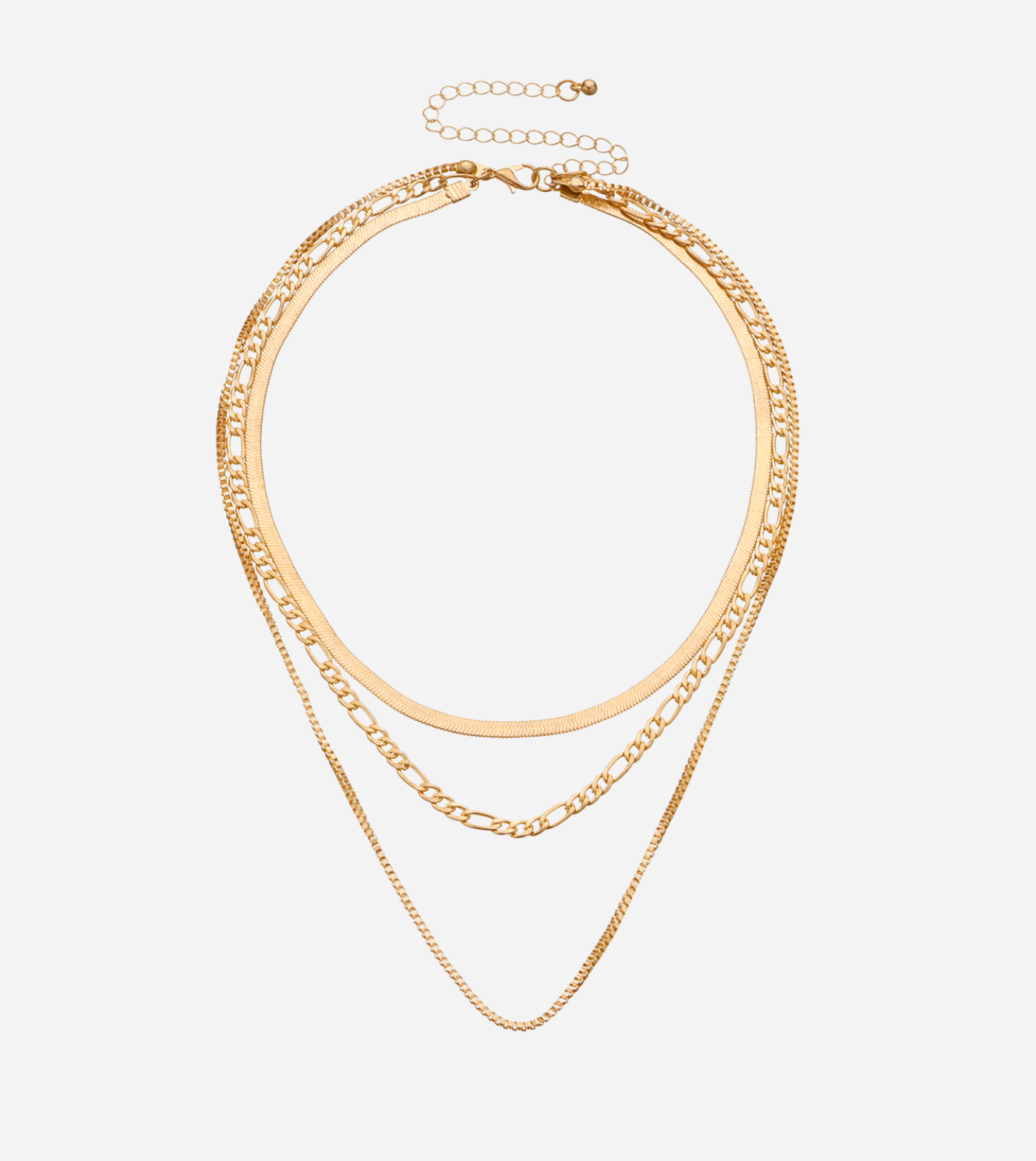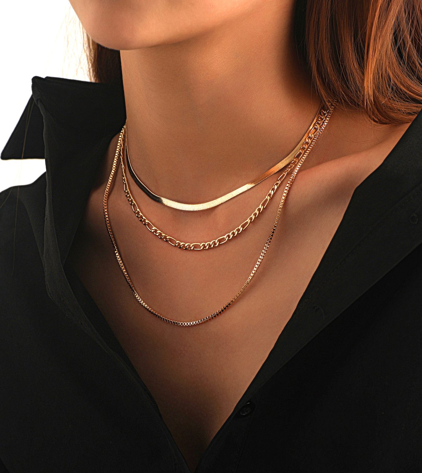 Elevate your style with our 3-Chain Layered Necklace, a versatile ensemble featuring a snake link, cuban, and curb link chains. Wear them together for a bold statement or separately to customize your look. Offering endless possibilities to express your unique style with every wear.