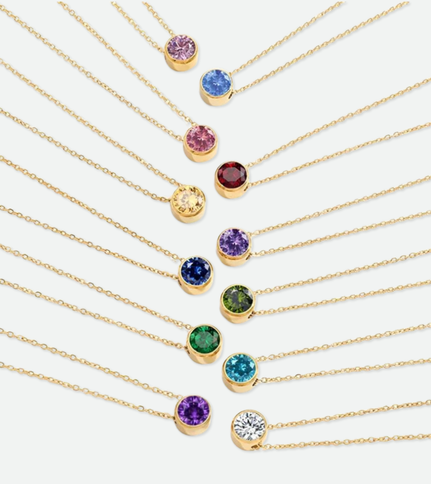 Personalize your style with our delicate birthstone necklaces. Each pendant features a petite gemstone representing your birth month, adding a touch of meaning and charm to your everyday look.
