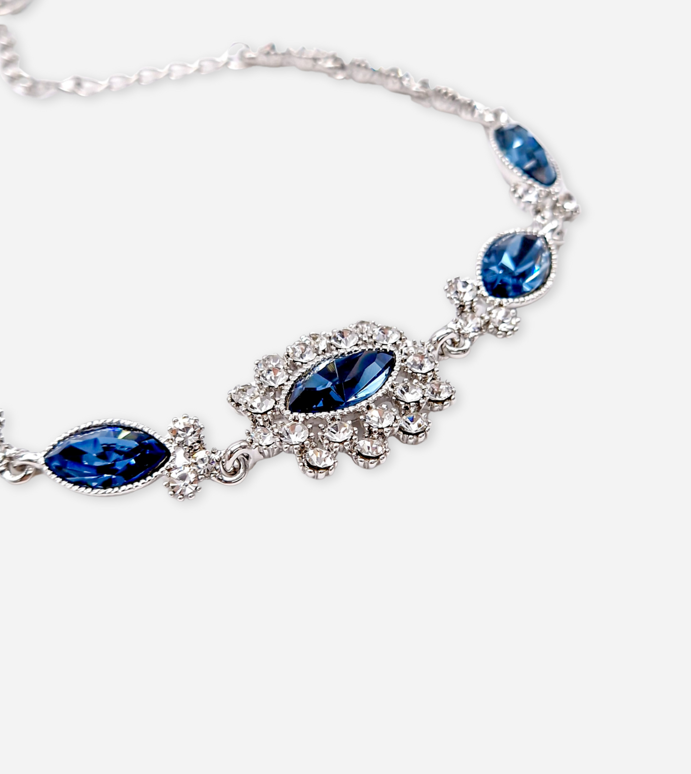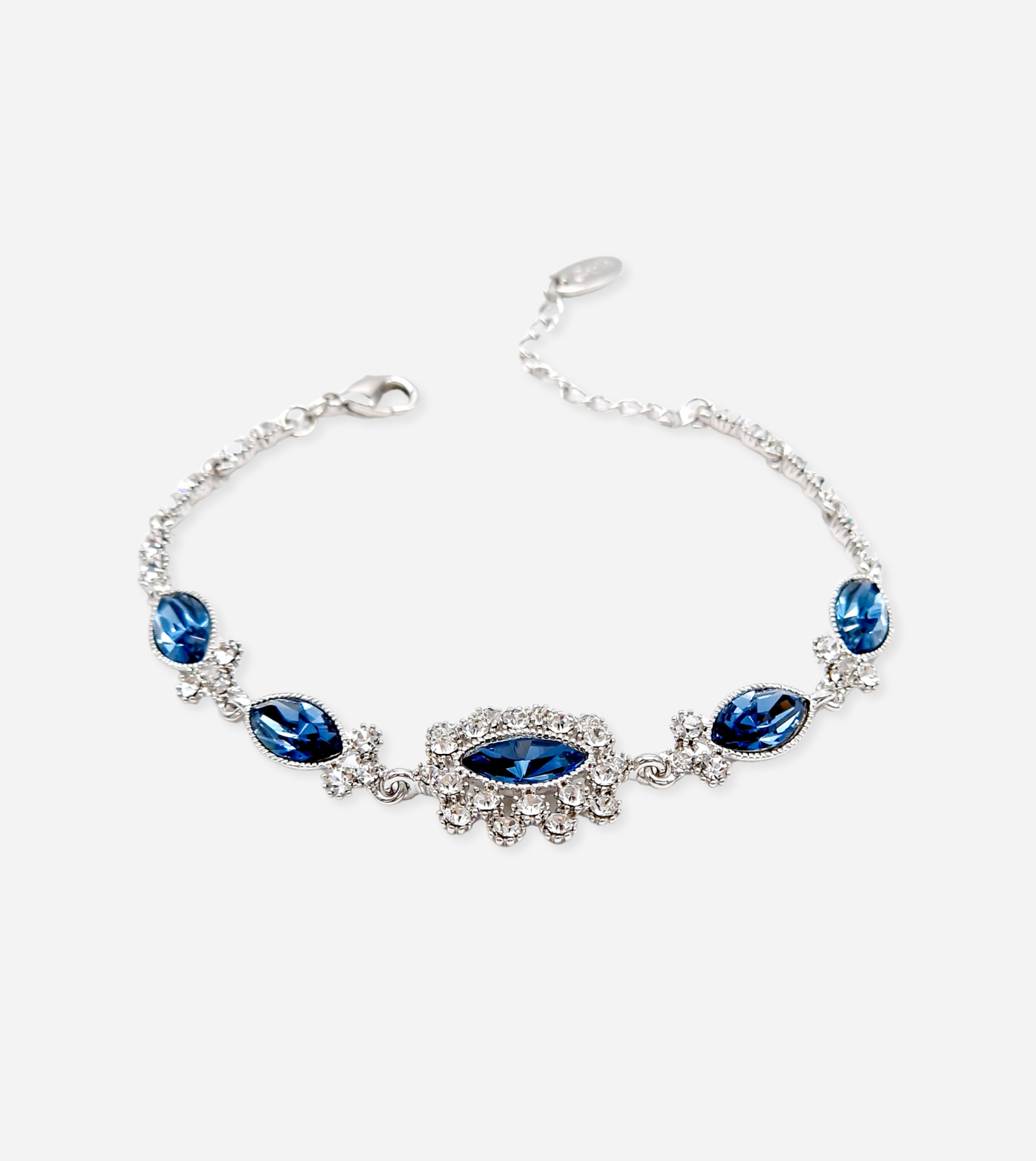Bring sparkle and glamour to your outfit with this dazzling crystal bracelet. Large blue crystals are expertly set in surgical steel and bring a delicate hint of color to any ensemble, while smaller crystals add that extra special touch of sparkle. This is elegance and luxury without the price tag.