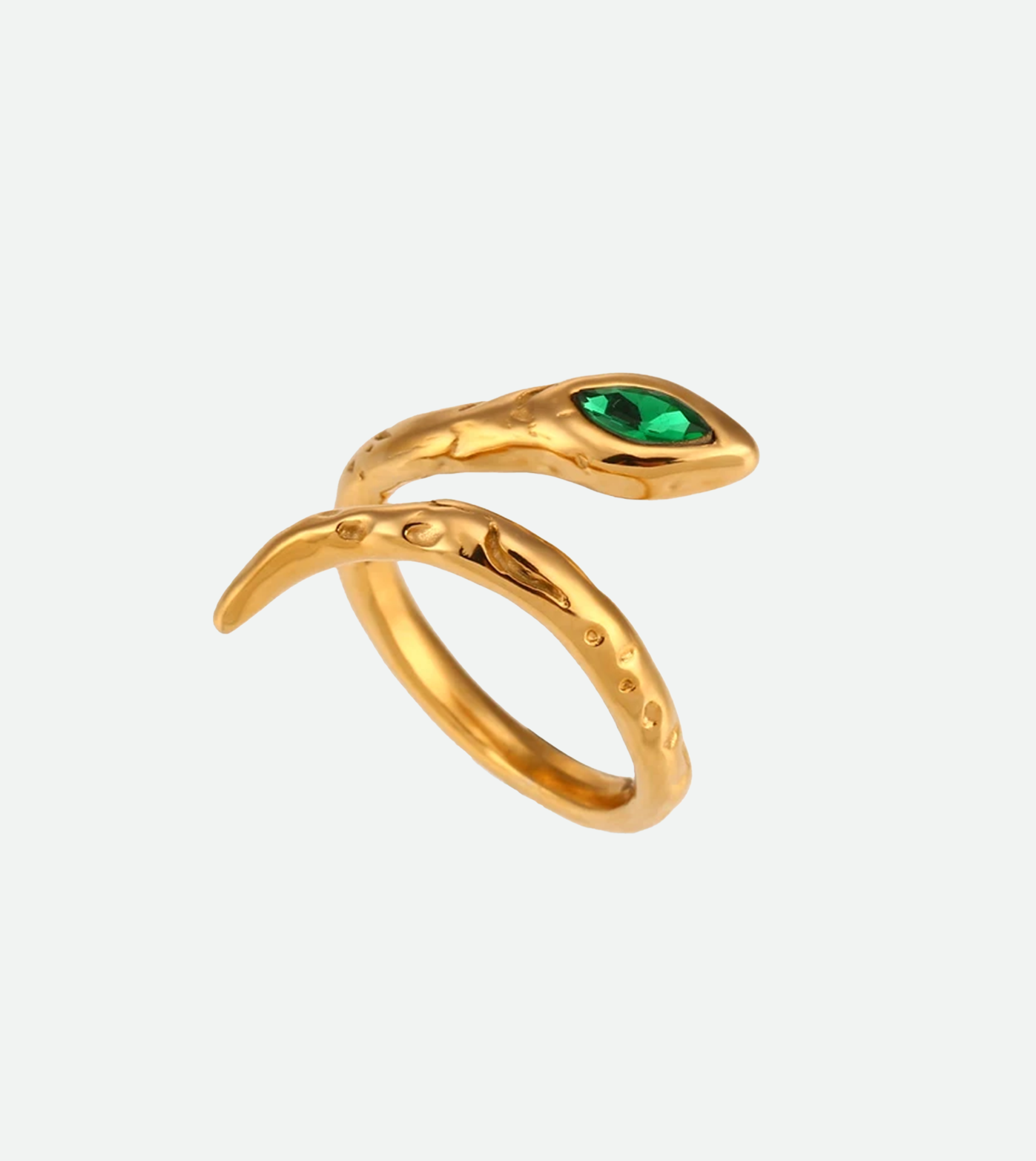 This unique piece is meticulously crafted to resemble a coiling snake, symbolizing renewal and creative life force. You can choose between the striking allure of emerald or the pristine beauty of white cubic zirconia to best suit your personal style. Perfect for those who love to make a statement with their jewelry, this ring is a conversation starter that complements both casual and formal ensembles.