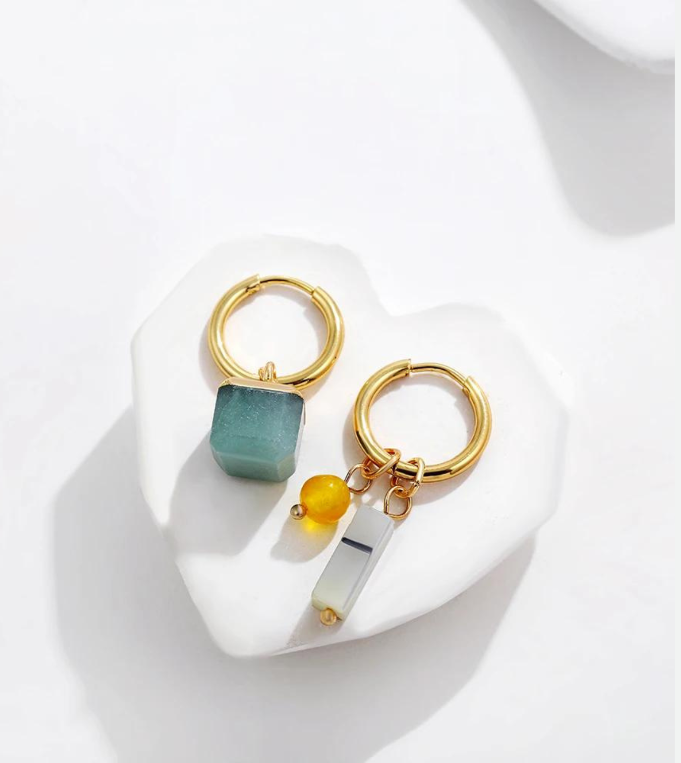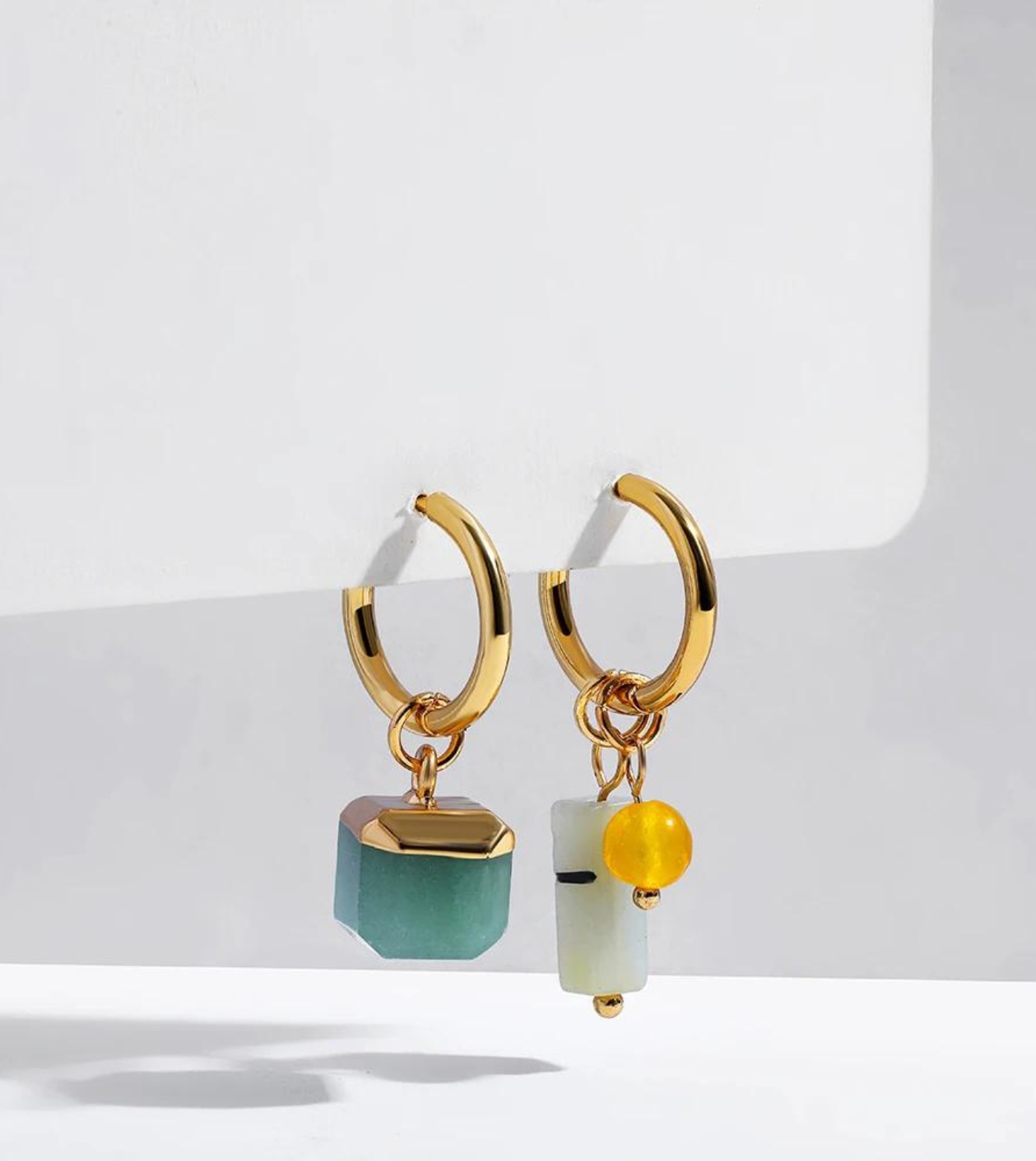 Huggie dangle earrings, featuring mesmerizing quartz dangles in unique, irregular shapes. Add a touch of natural elegance to your look with these versatile statement pieces.