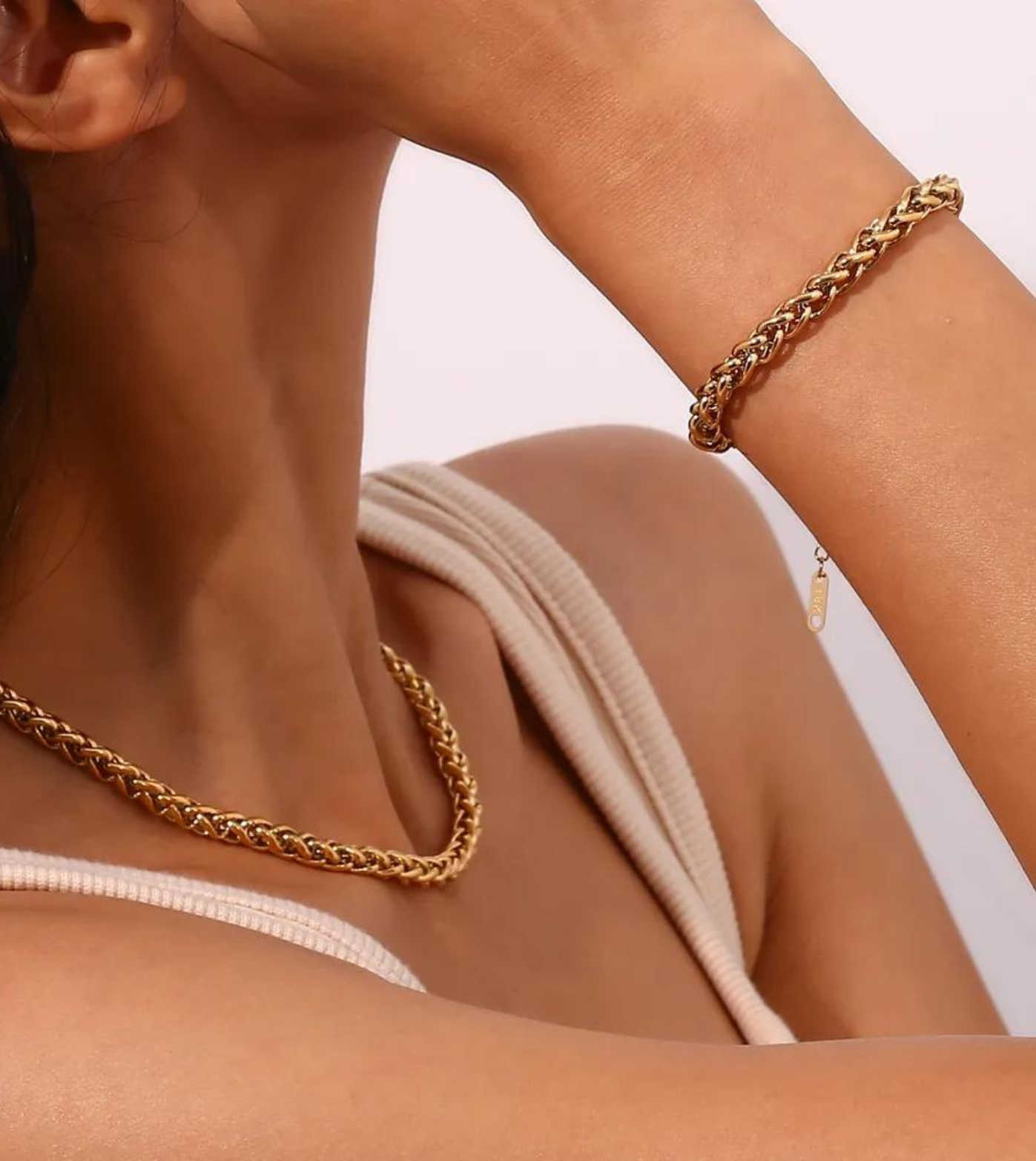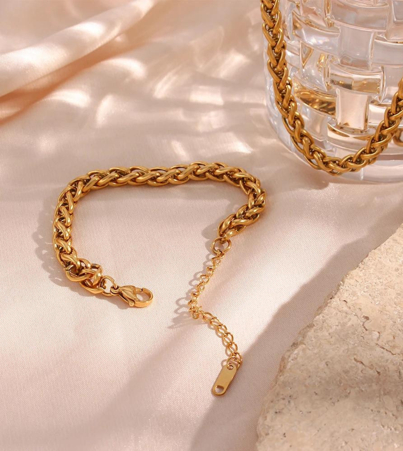 Wrap your wrist in bold elegance with our Chunky Braid Link Bracelet. This statement piece features a robust and intricately woven design, adding a touch of contemporary flair to your wrist.