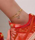 Embrace the whimsical charm of our layered anklet adorned with a delicate butterfly pendant accented by two shimmering zircon crystals. Elevate your look with a touch of nature-inspired elegance.