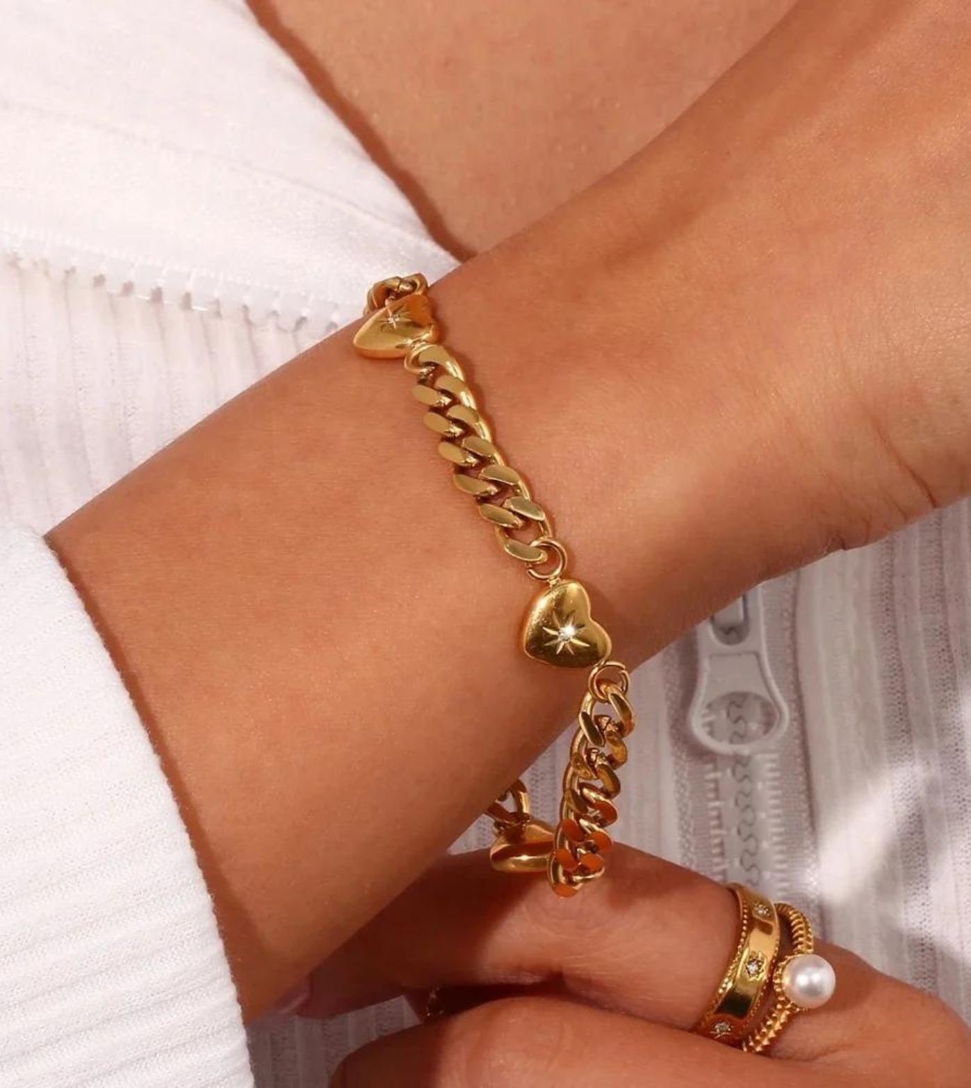 Add a touch of romance to your wrist with our stunning Cagliari bracelet. Featuring delicate hearts adorned with sparkling cubic zirconia, this elegant chain bracelet is the perfect accessory to elevate any outfit with a hint of glamour and charm.