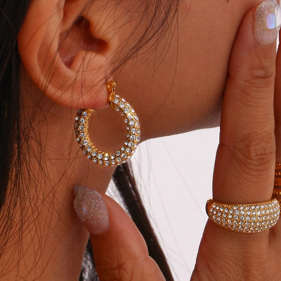 Adorn your ears with Celeste Hoop Earrings, chunky and filled with dazzling cubic zirconia. The clasp mechanism ensures a secure and stylish fit, making these earrings a bold statement of glamour for any occasion.