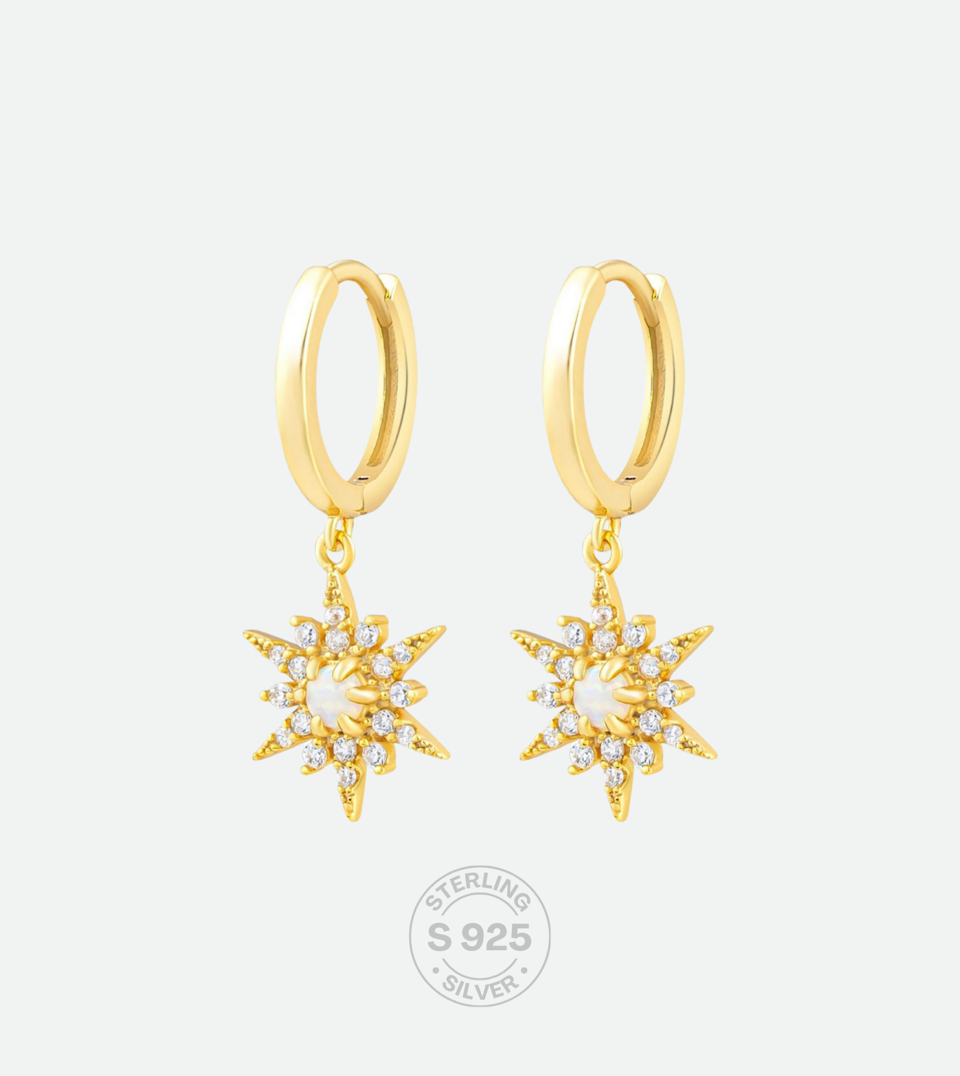 Meet your new everyday favorites! Our S925 Huggie Earrings feature a cubic zirconia-studded star and a dainty opal for a touch of sparkle and color. PVD plated in 14k gold, these earrings offer a delicate shine while staying durable and perfect for all-day wear.
