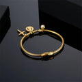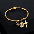 Wrap your wrist in divine style with our bangle featuring zirconia, cross, and Virgin Mary charms. The magnetic clasp adds convenience to the elegance, making this piece a harmonious blend of spirituality and sophistication.