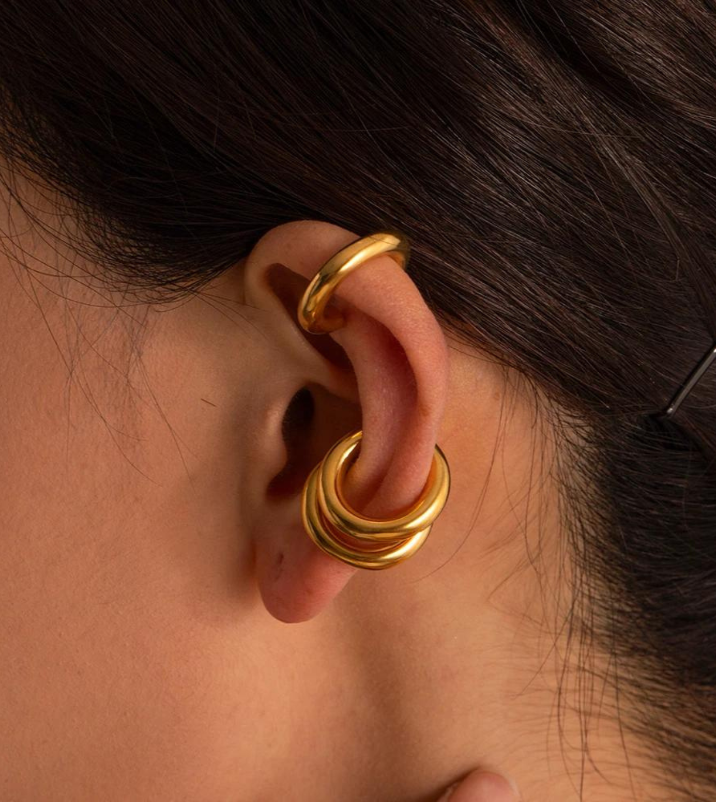 Get that edgy vibe without the commitment! Slip on our two simple chunky ear cuff hoops — no piercing required. Modern, cool, and effortlessly chic, these cuffs bring an instant upgrade to your ear game.