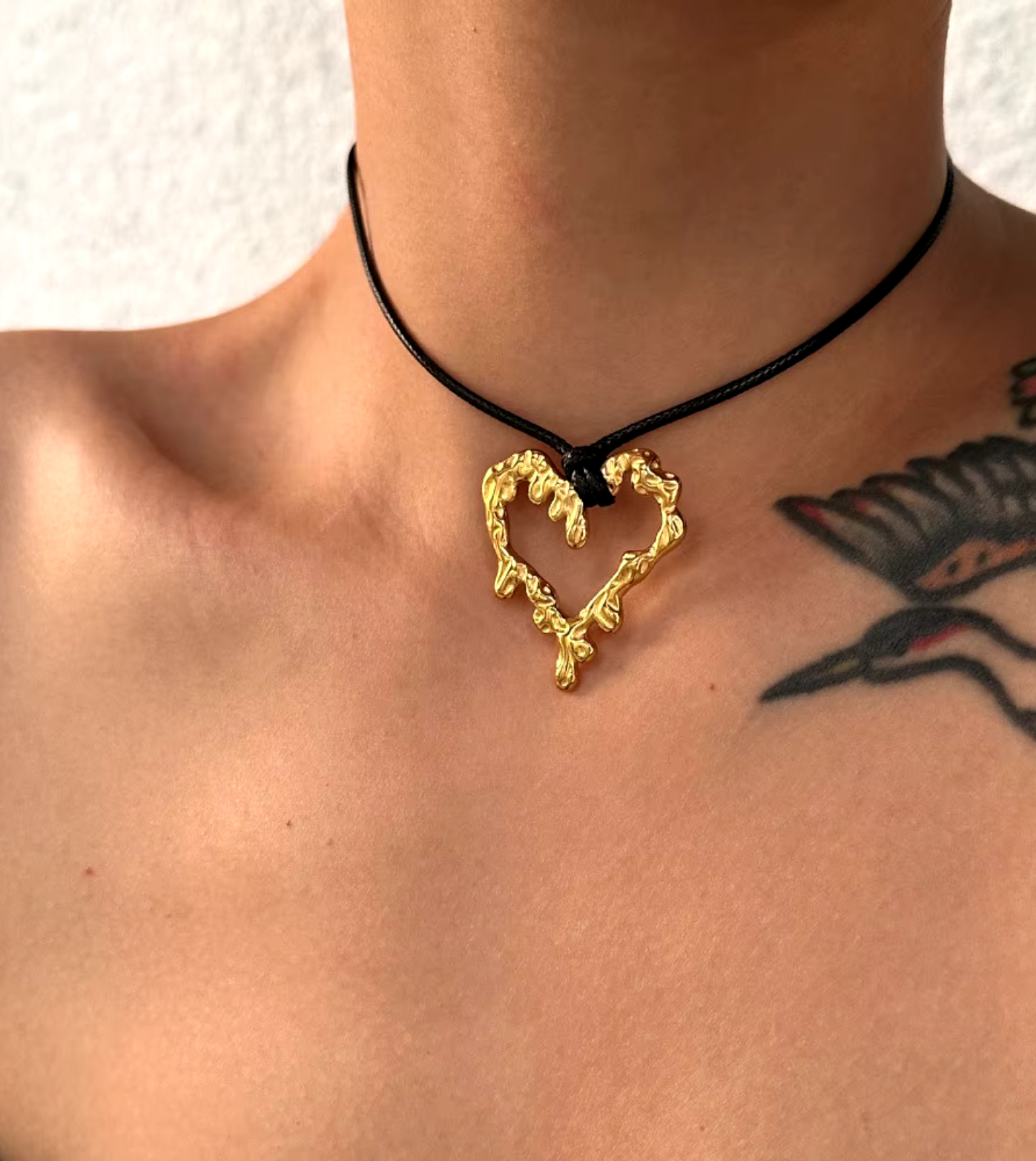 Make a statement with our Chunky Heart Necklace—a bold boho piece that’s as versatile as it is stylish. Available in 18k PVD gold or silver, this titanium steel necklace features a striking heart pendant designed to elevate any look with a touch of effortless charm.