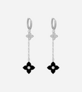 Step into luck and luxury with our dangle huggie earrings featuring three black clovers intricately studded with cubic zirconia. This enchanting design adds a touch of whimsy and sophistication to your ears, creating a unique and eye-catching accessory that blends intricate detailing with timeless charm