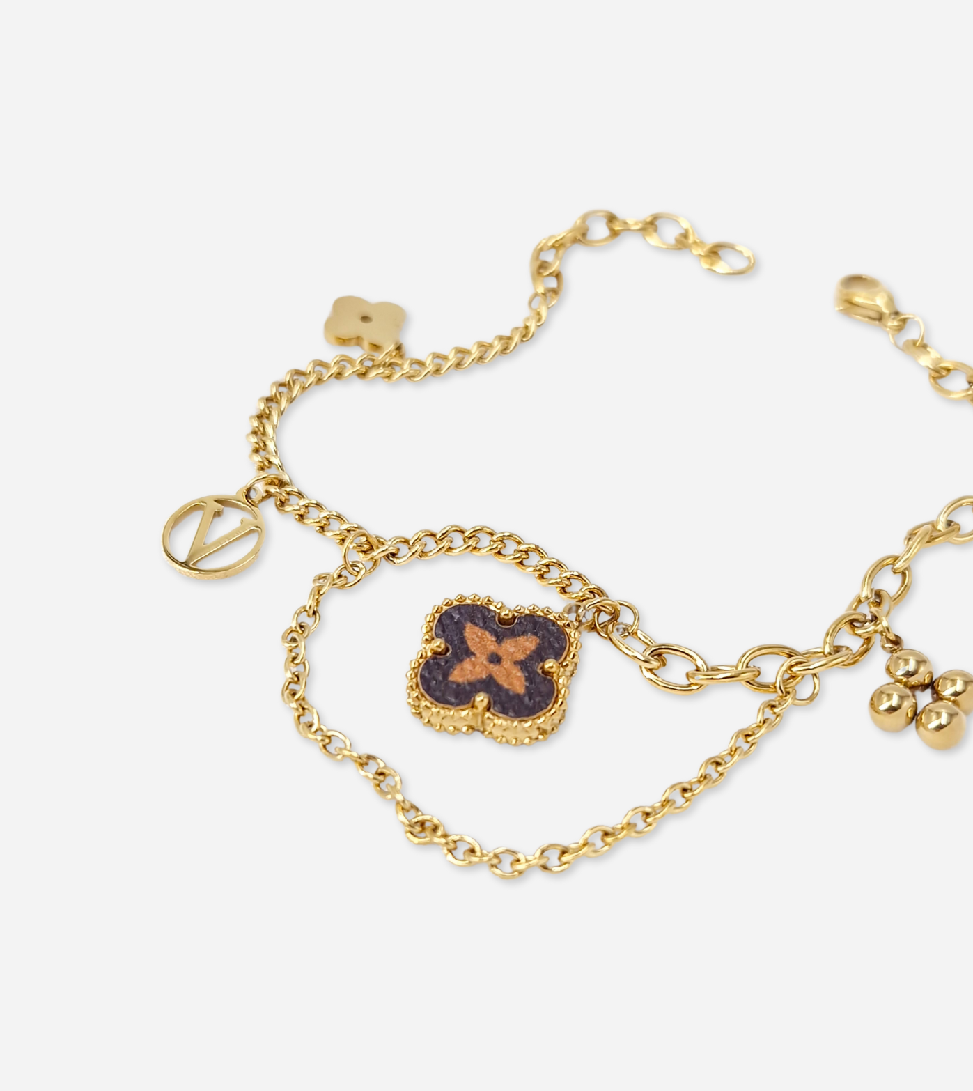 This beautiful bracelet is crafted with classic flower charms. Delicate and feminine, this bracelet will add the finishing touch to any outfit. A perfect gift for your loved one or a treat to yourself!