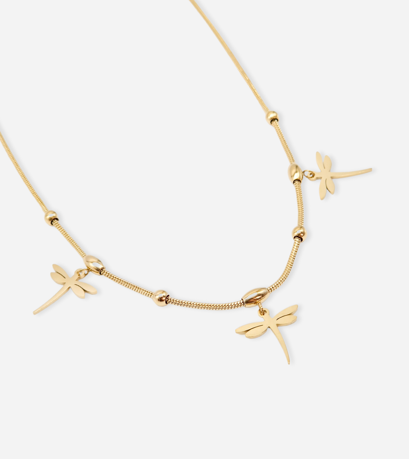 This necklace is a stunning and unique accessory. The three dragonfly pendants add a touch of whimsy. The dragonflies symbolize change and transformation, making this necklace a meaningful and stylish choice. The snake chain is adjustable, ensuring a comfortable and perfect fit.
