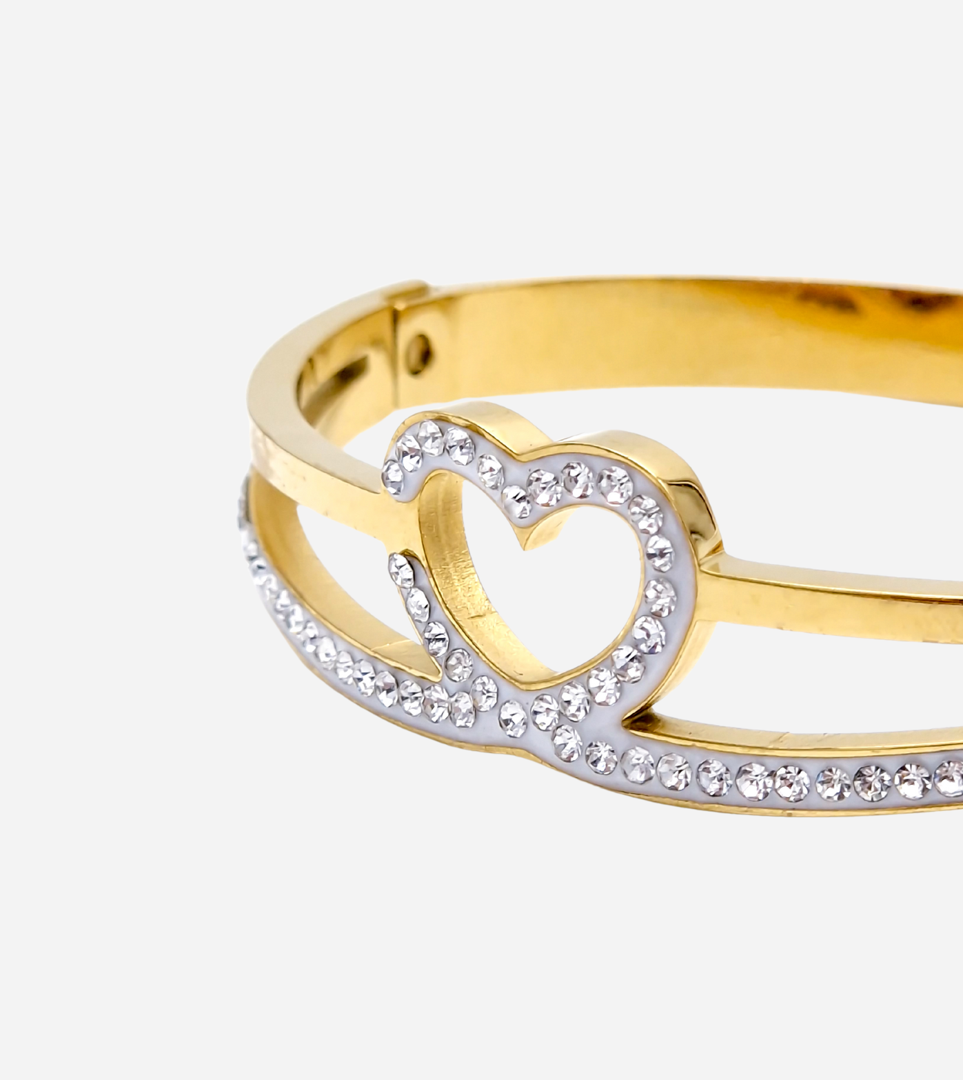 The right bracelet can make all the difference between a stunning appearance and a boring one. This gorgeous hinged bangle bracelet features a heart covered in sparkly crystals, and will definitely make you stand out from the crowd.