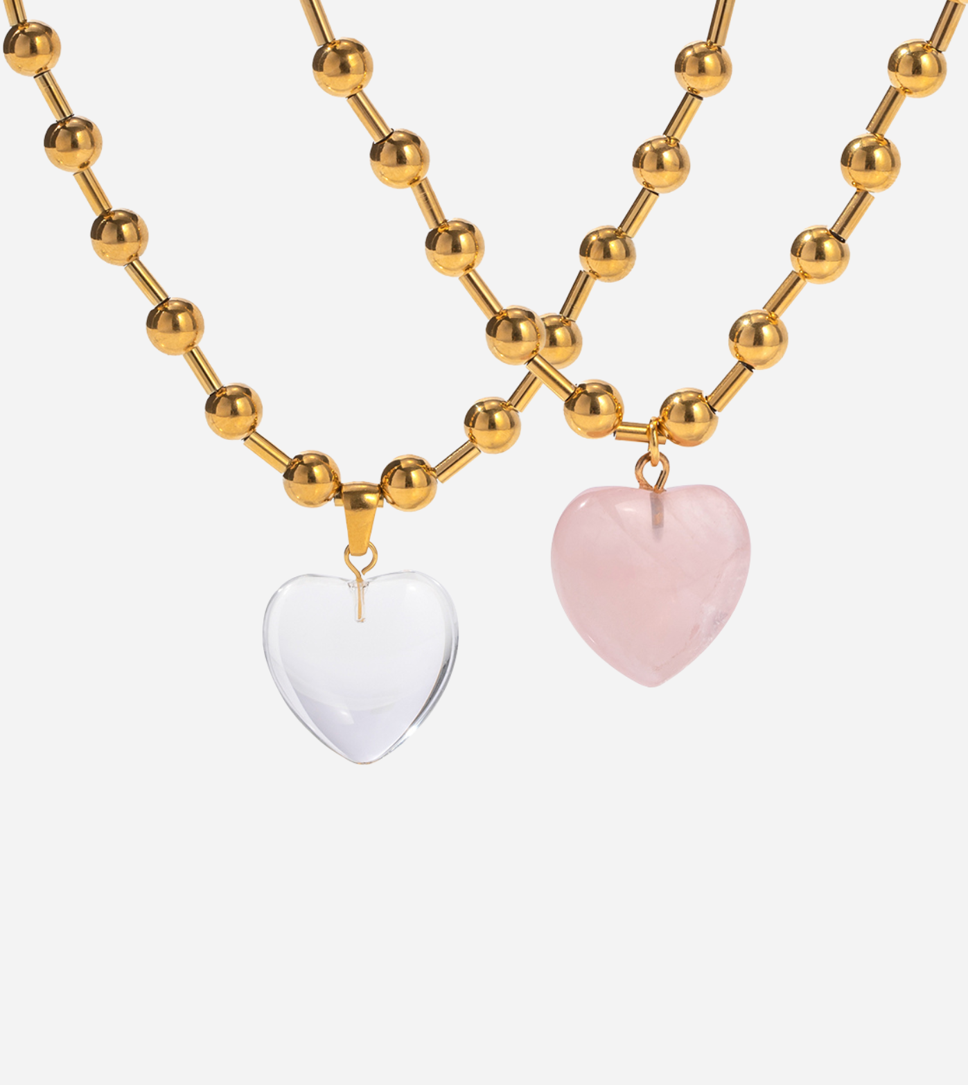 Make a bold statement with our chunky bead choker necklace. Featuring a clear crystal heart. Available in two colours.