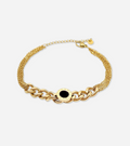 This bracelet is a stunning and unique accessory. The gold plated decor link chain adds a touch of luxury and uniqueness, while the shiny black centrepiece with roman numerals add a touch of whimsy.