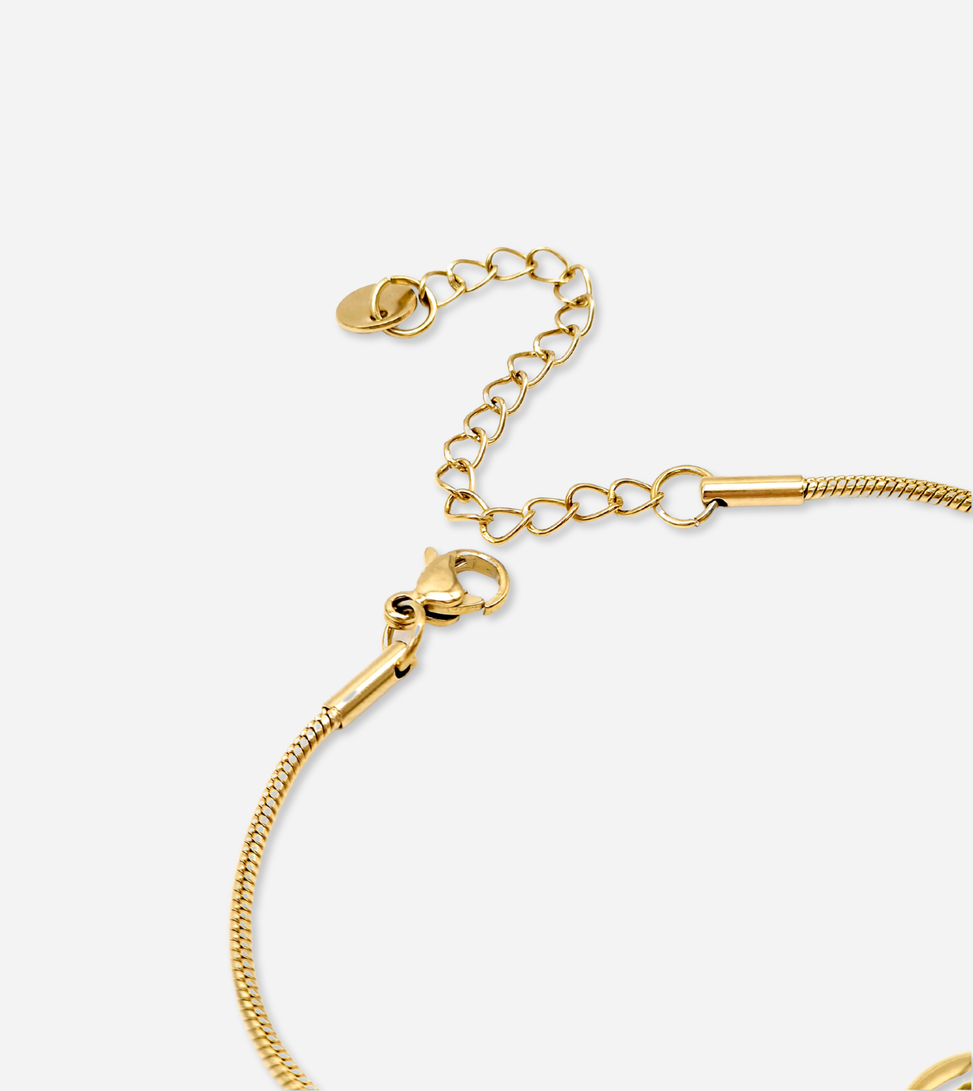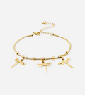This bracelet is a stunning and unique accessory. The gold color of the snake link chain adds a touch of luxury, while the three dragonfly pendants add a touch of whimsy. The dragonflies symbolize change and transformation, making this bracelet a meaningful and stylish choice. The snake chain is adjustable, ensuring a comfortable and perfect fit.
