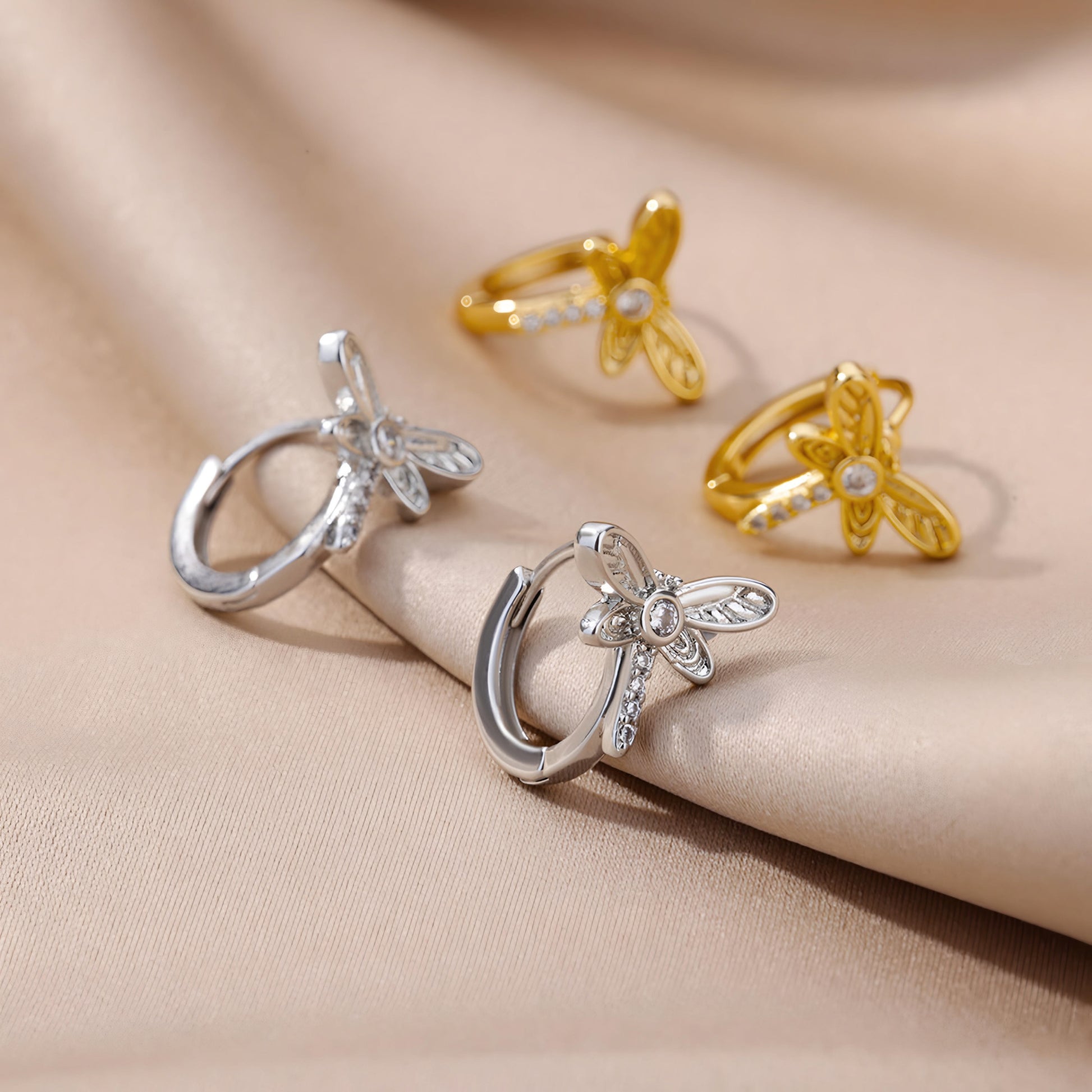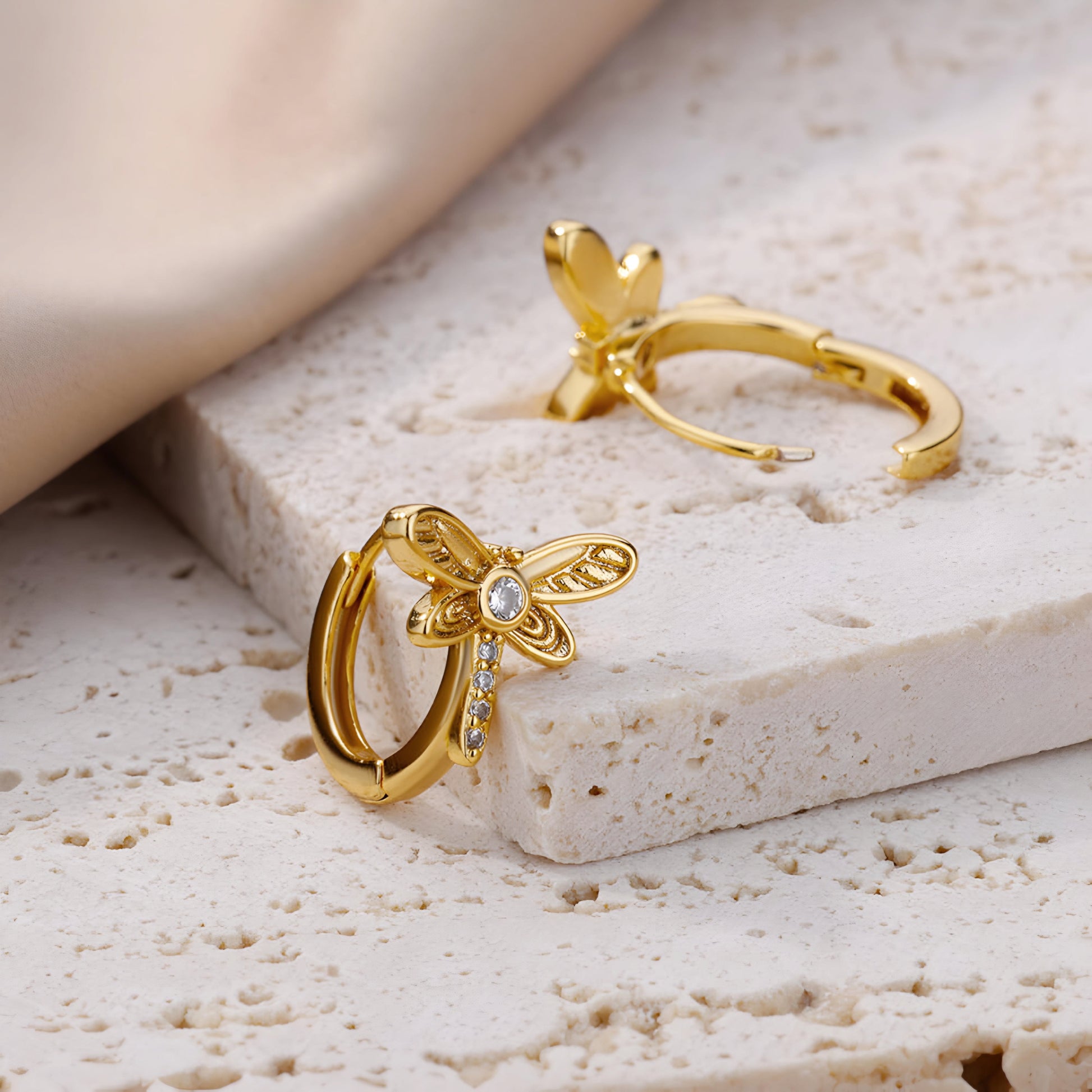Wrap your ears in luck and luxury with our Huggie Earrings featuring a charming dragonfly design, studded with sparkling cubic zirconia.