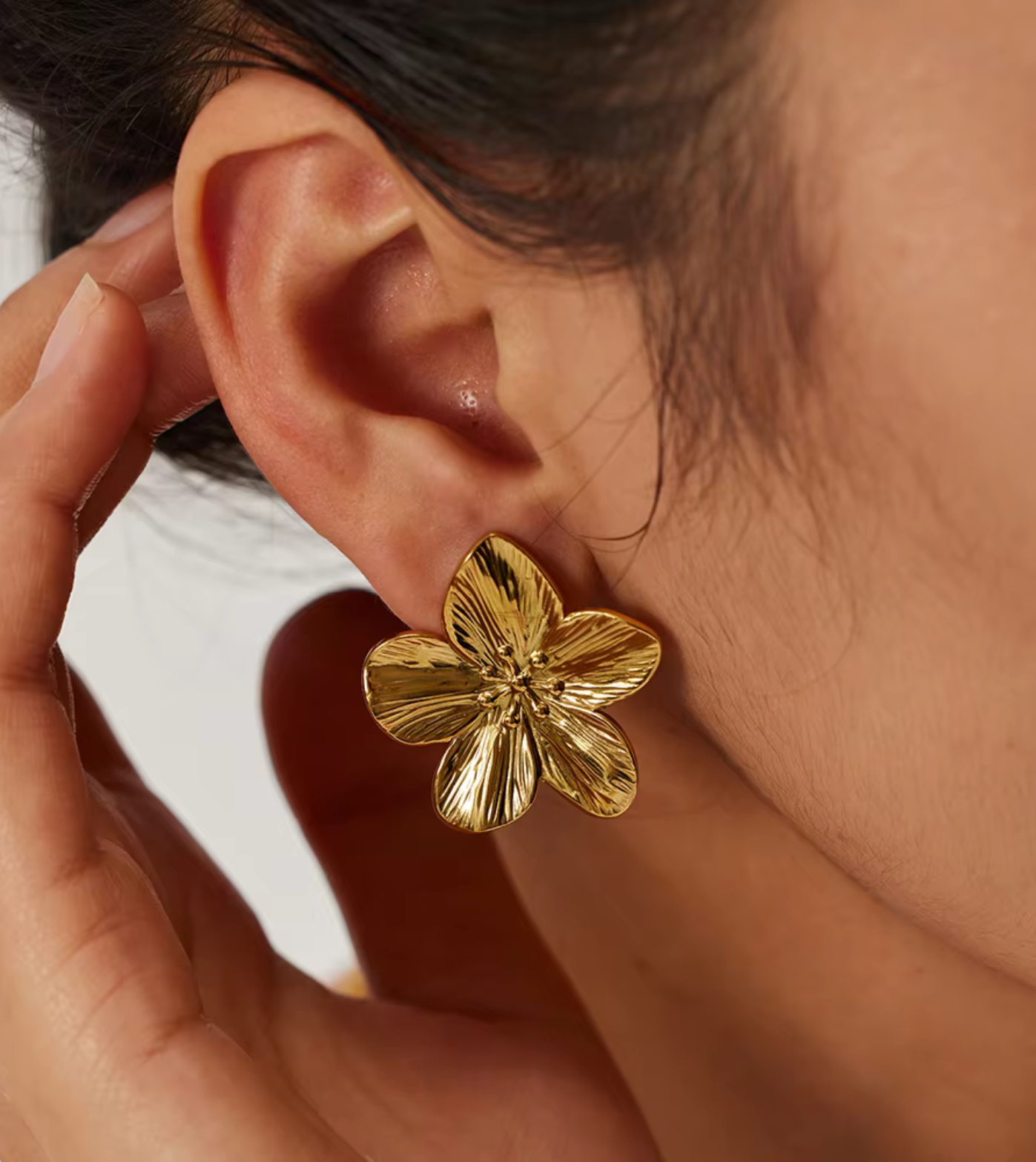 Make a bold statement with our Fleur Chunky Flower Earrings. These gorgeous 3cm-wide studs feature a striking flower design that adds a touch of floral flair to any outfit. Crafted from durable titanium steel and plated in 18k gold, they’re both lightweight and hypoallergenic—perfect for all-day wear with a style that truly stands out.