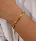 Meet our Intertwined Snake Link Bracelet, a mesmerizing creation in radiant 18k gold. This bracelet showcases intricately woven snake links that entwine to form a captivating design. With its unique allure and meticulous craftsmanship, it's more than just an accessory—it's a statement piece that adds intrigue to any outfit.