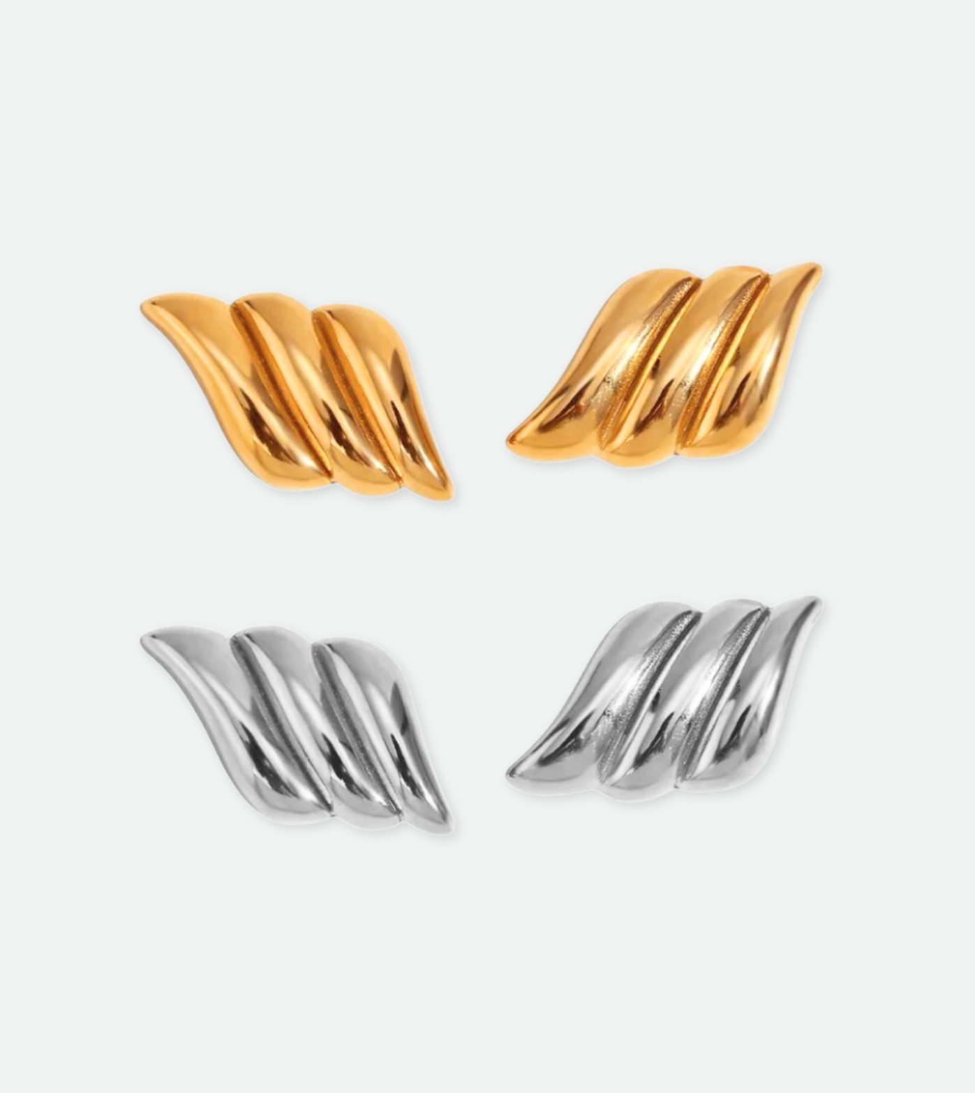 Make a statement with our Chunky Wing Shaped Earrings, crafted in a bold and unique wing design. PVD plated in 18k gold, these earrings add a modern edge to any outfit while ensuring long-lasting shine. Perfect for those who love standout pieces that turn heads!