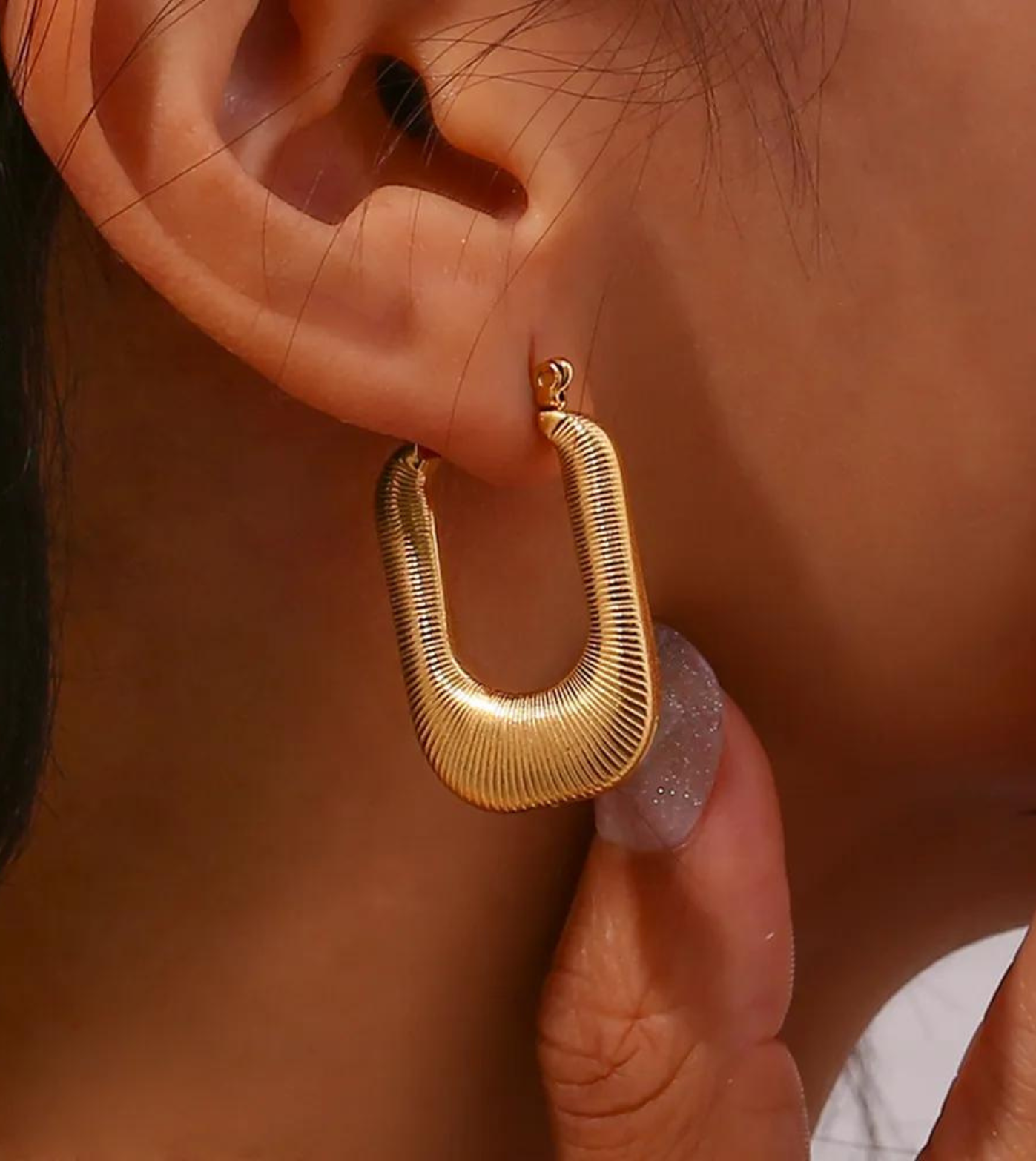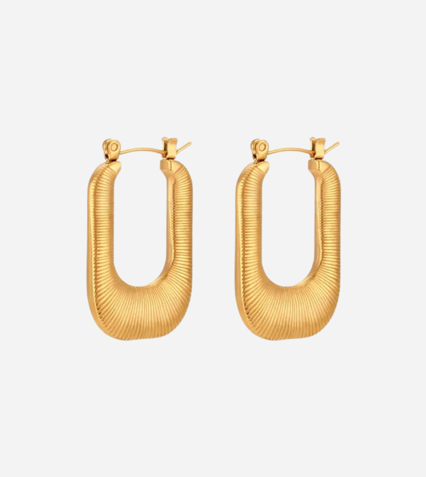 Make a bold statement with our Ridged Hoop Earrings, designed in a unique rectangular shape for a modern twist. The chunky, detailed ridges add a touch of sophistication, while the hinged clasp ensures easy and secure wear.