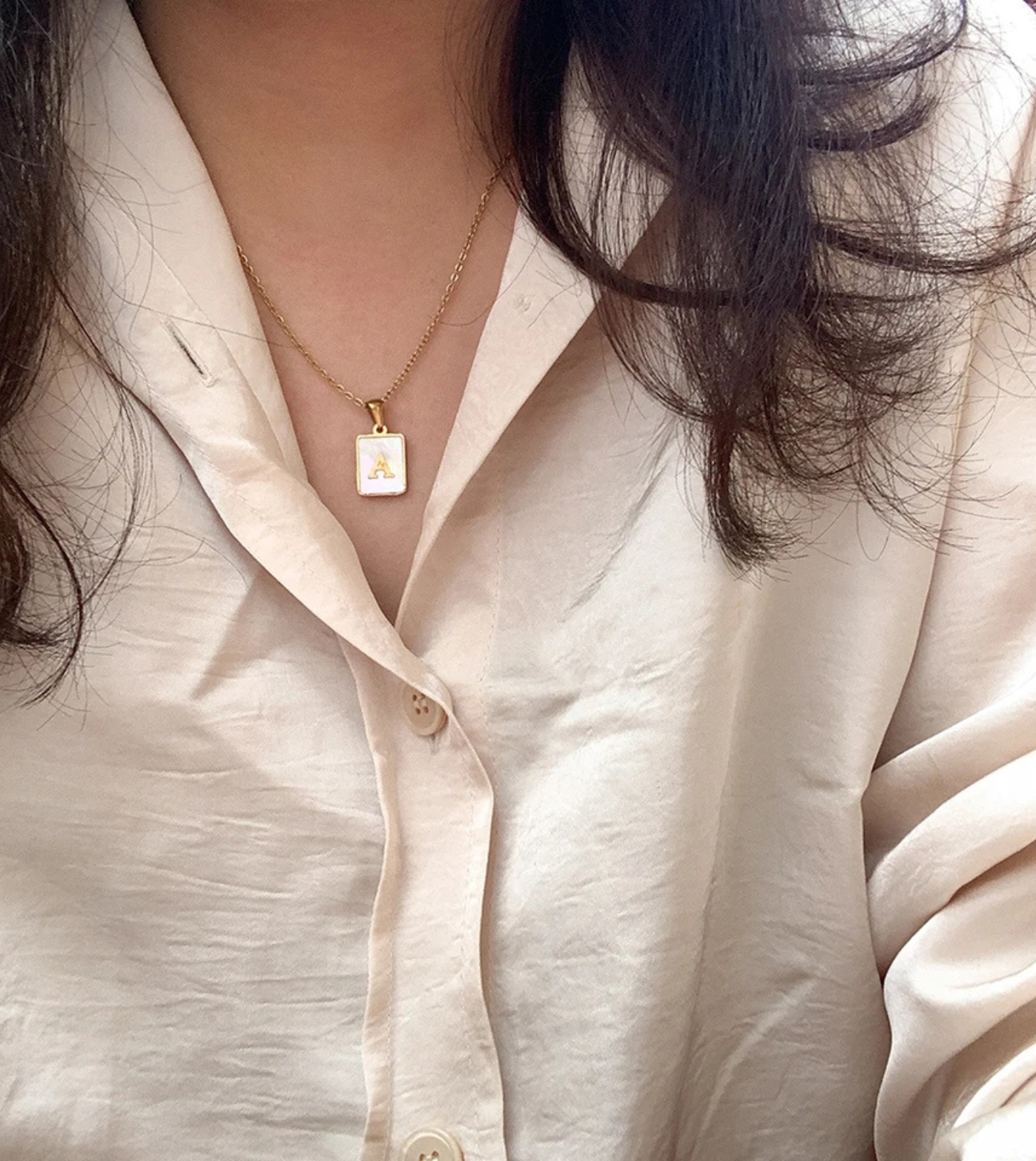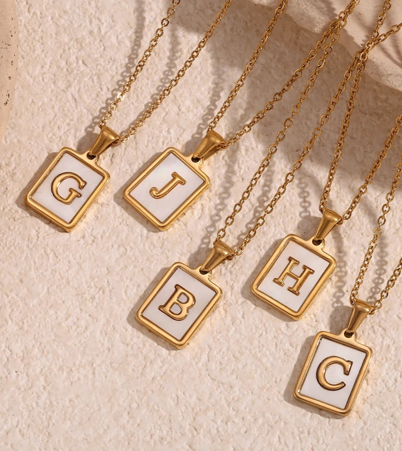 Meet your new go-to for a dash of personality and a sprinkle of charm! Our dainty necklace, plated in gleaming 18k gold over stainless steel, rocks a cool rectangular pendant with natural mother of pearl. Take the fun up a notch by picking your fave initial—it's all about adding a splash of you to your style. A total must-have for a playful twist on timeless chic!