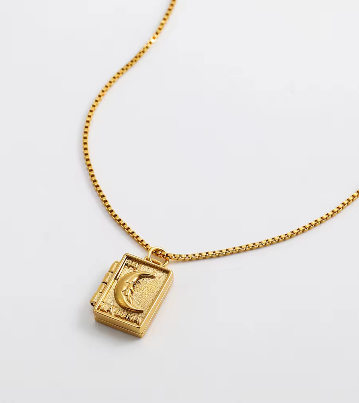 Embrace celestial charm with our "La Luna" locket pendant necklace, delicately crafted on a dainty box chain. Keep your secrets close to your heart with this timeless piece that captures the mystique of the moon.