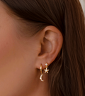 Embrace celestial elegance with our S925 Huggie Earrings, featuring a moon-shaped dangle studded with sparkling cubic zirconia and a dainty opal accent. PVD plated in 14k gold, these earrings bring a touch of the night sky to your everyday style, perfect for adding a little magic to any look.