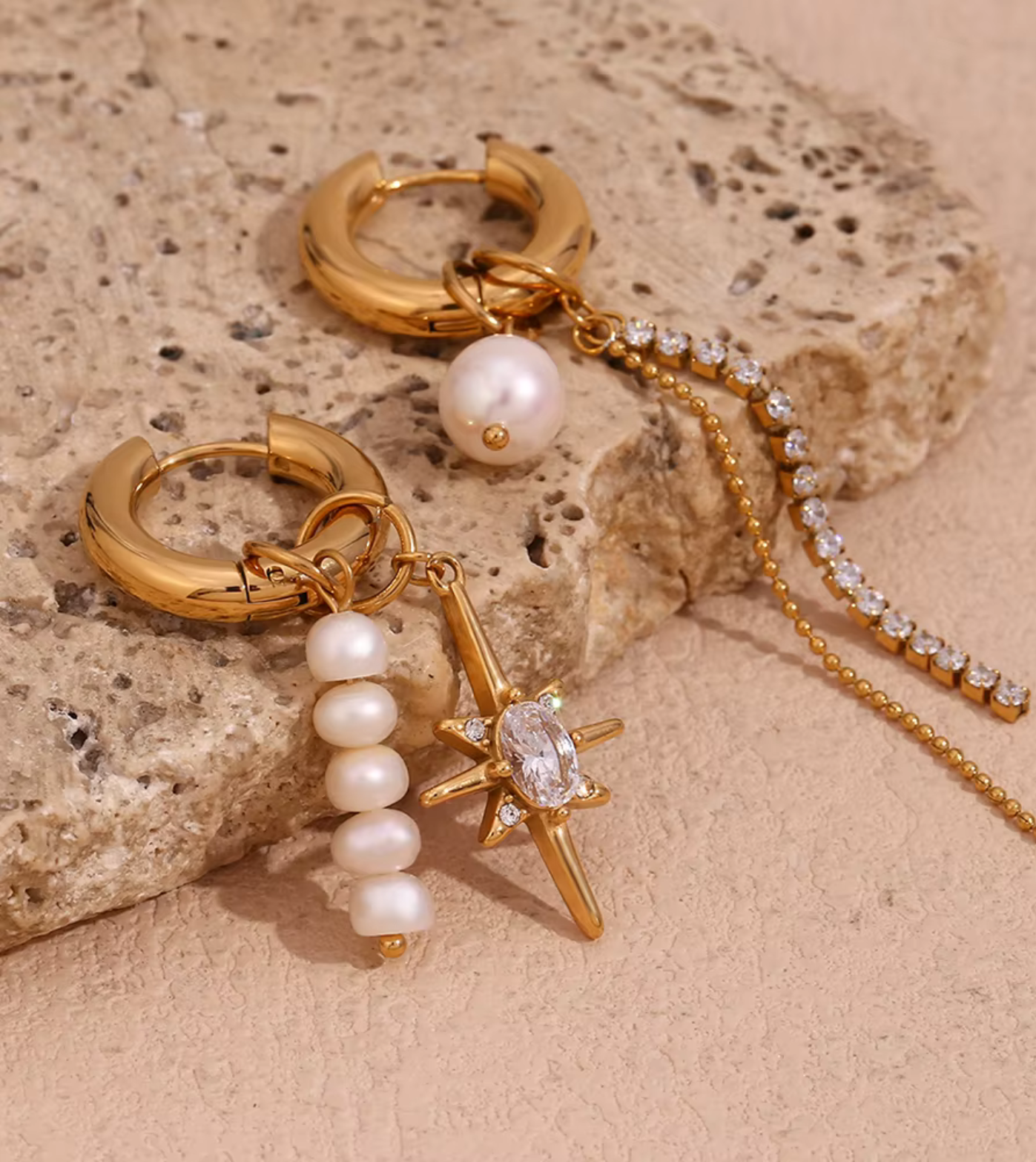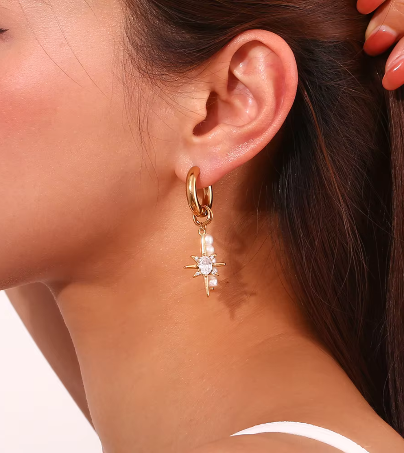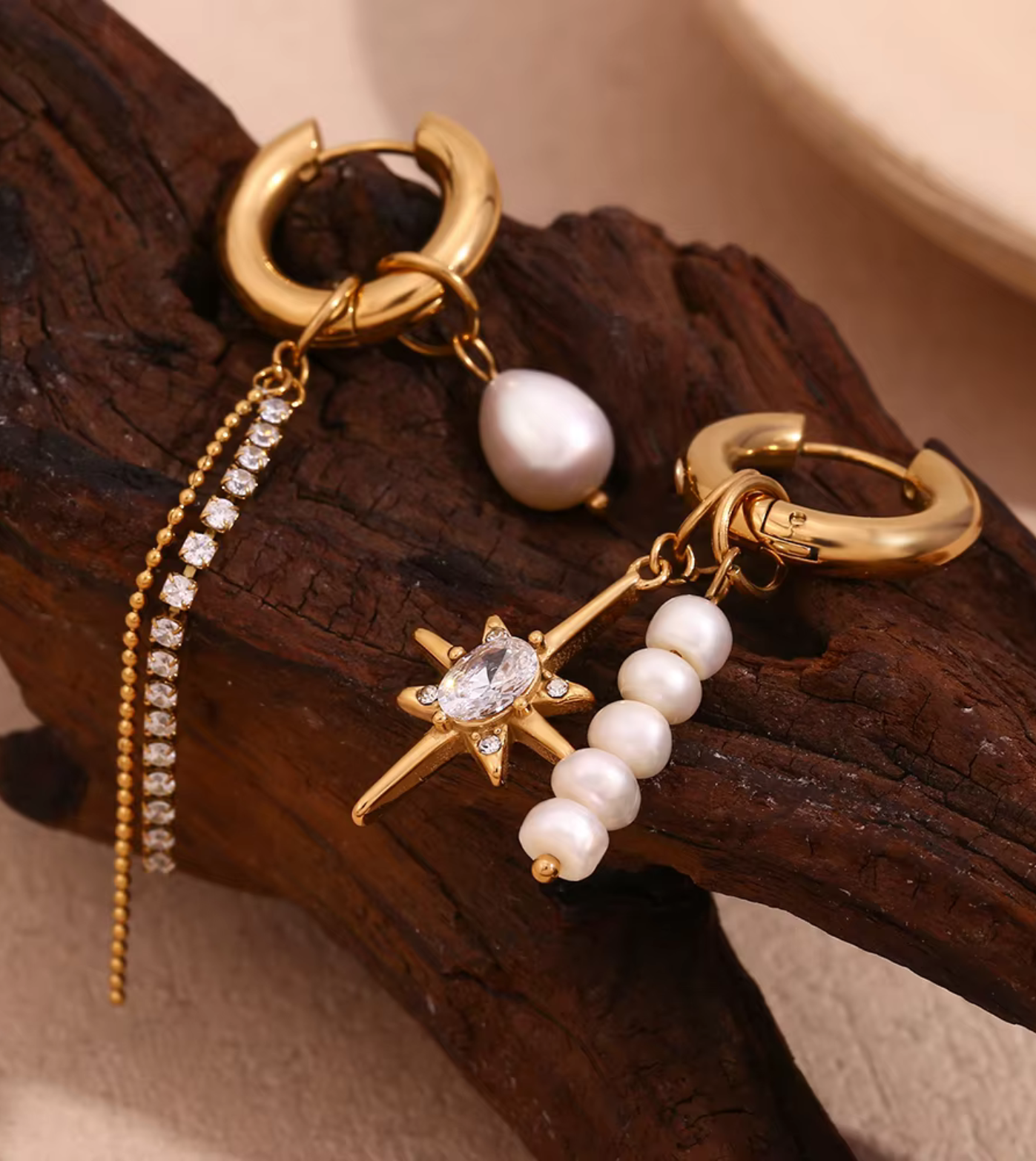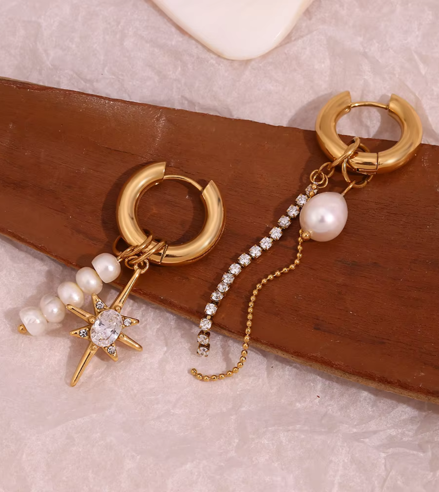 Bold meets whimsical with our Chunky Hoops featuring a stunning cubic zirconia star dangle, playful tassels, and elegant freshwater pearls. These statement earrings are perfect for adding a fun, glamorous touch to any outfit. The blend of textures and details creates a unique look that’s sure to turn heads!