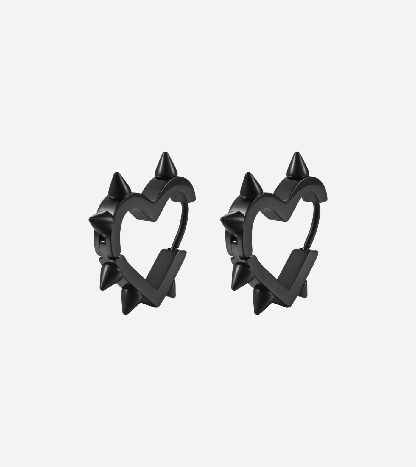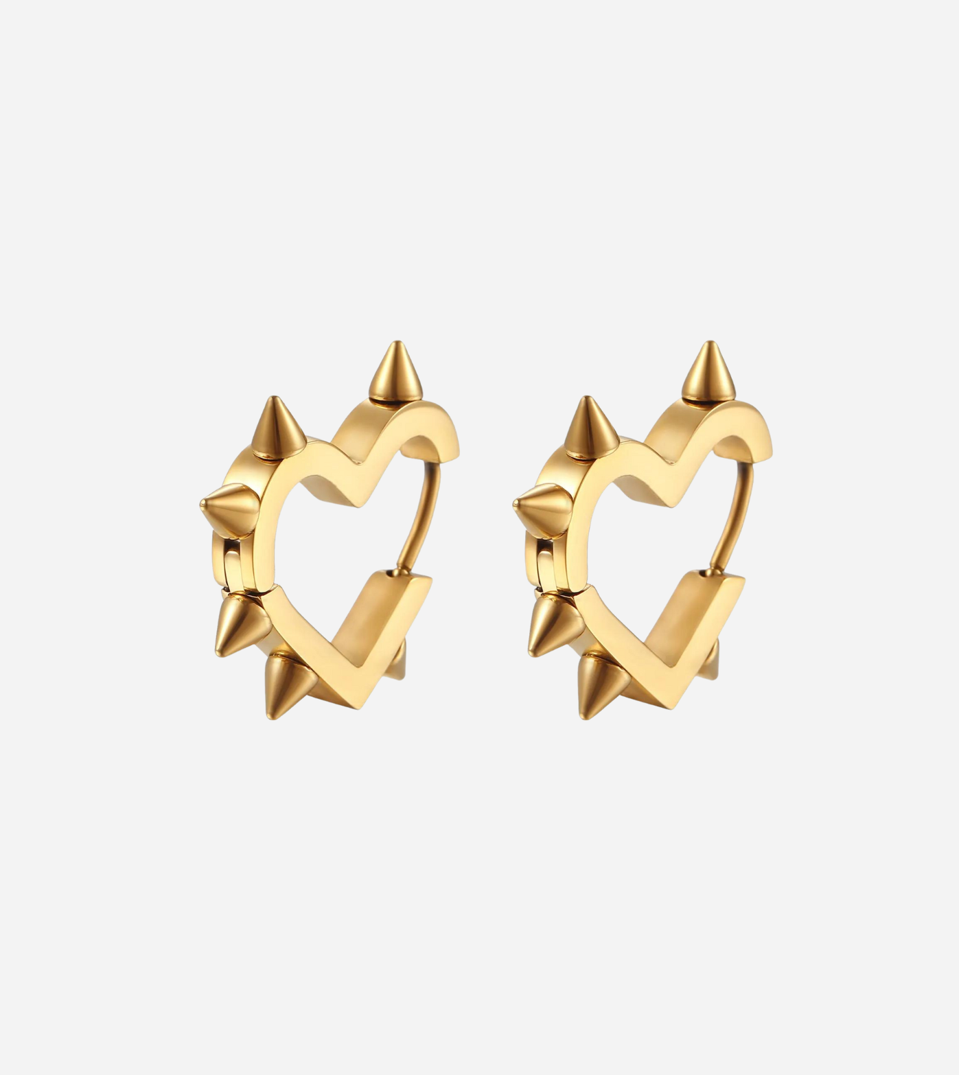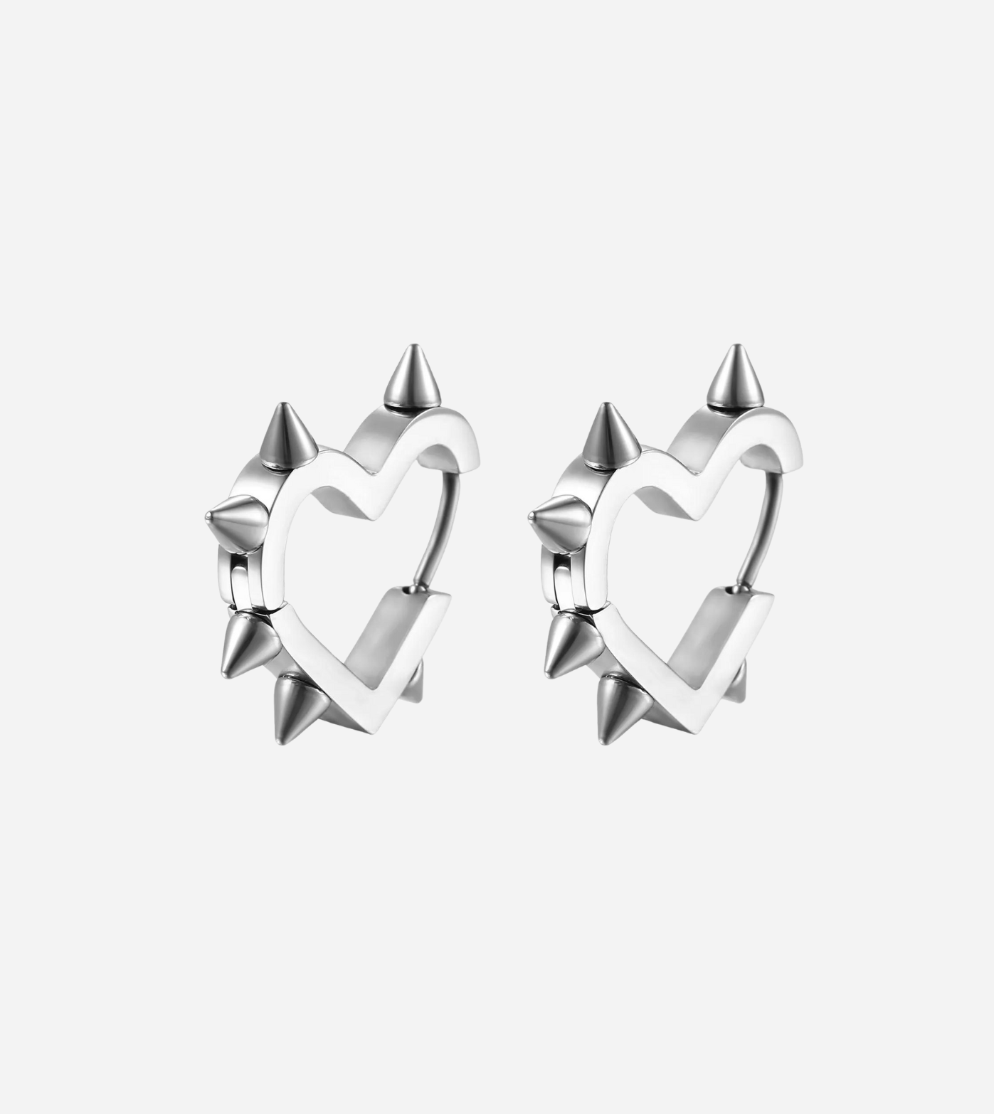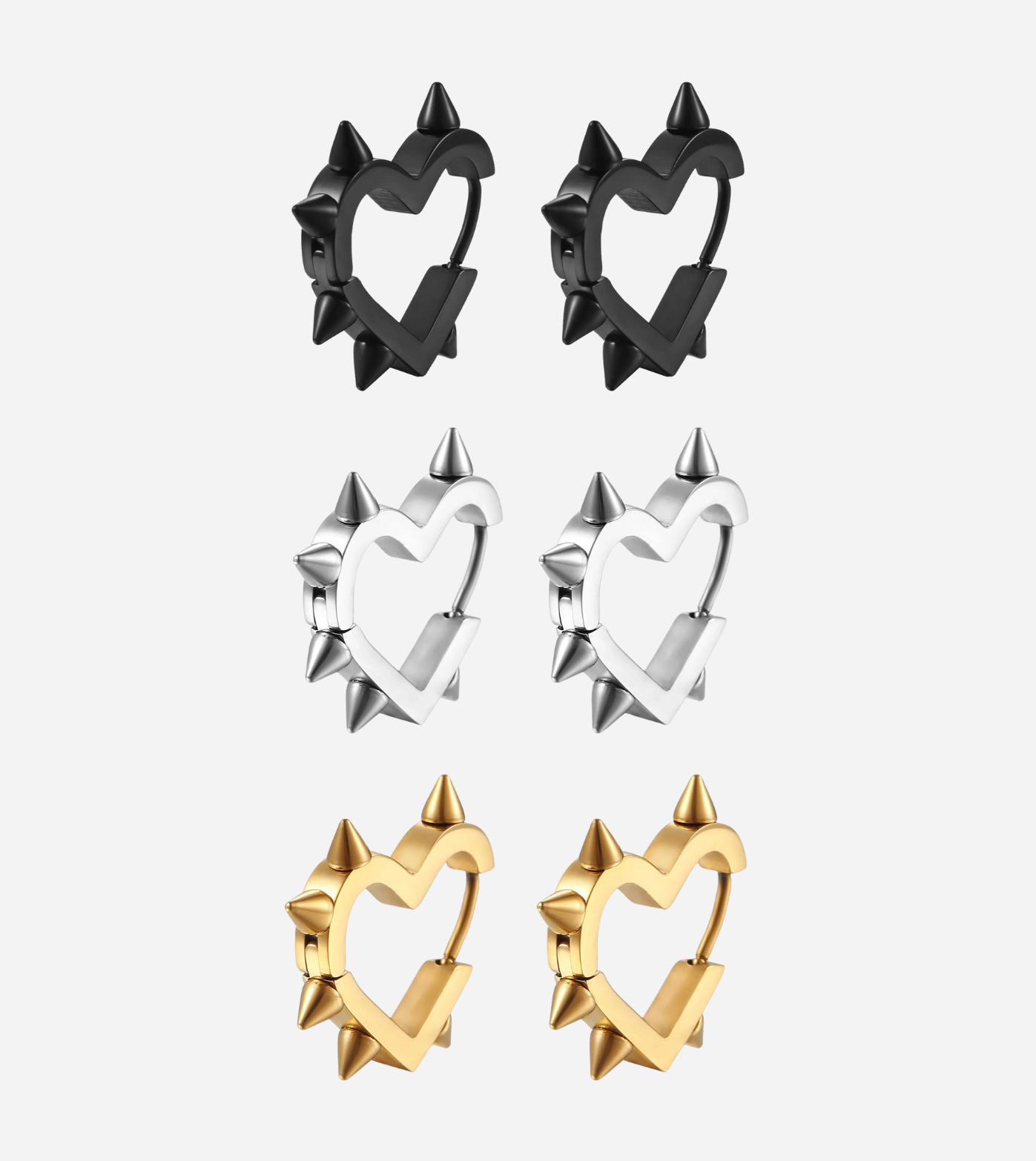 Rebel with style in our Heart-Shaped Huggie Earrings with a punk twist. Each earring features daring spikes, adding an edgy and unconventional touch to the classic heart shape. Embrace your inner punk fashionista with this bold and statement-making accessory that effortlessly fuses romance and rebellion.