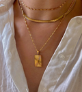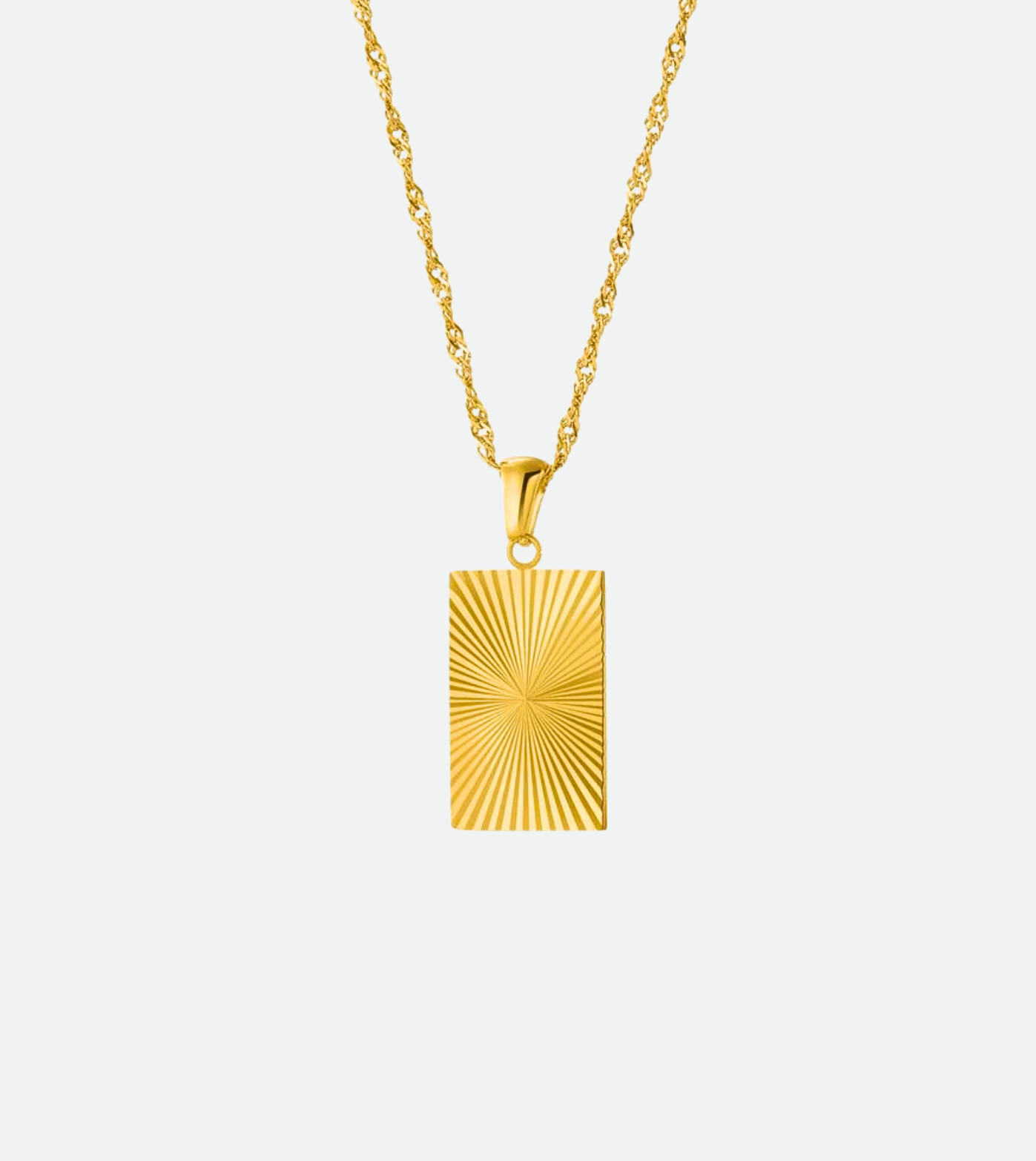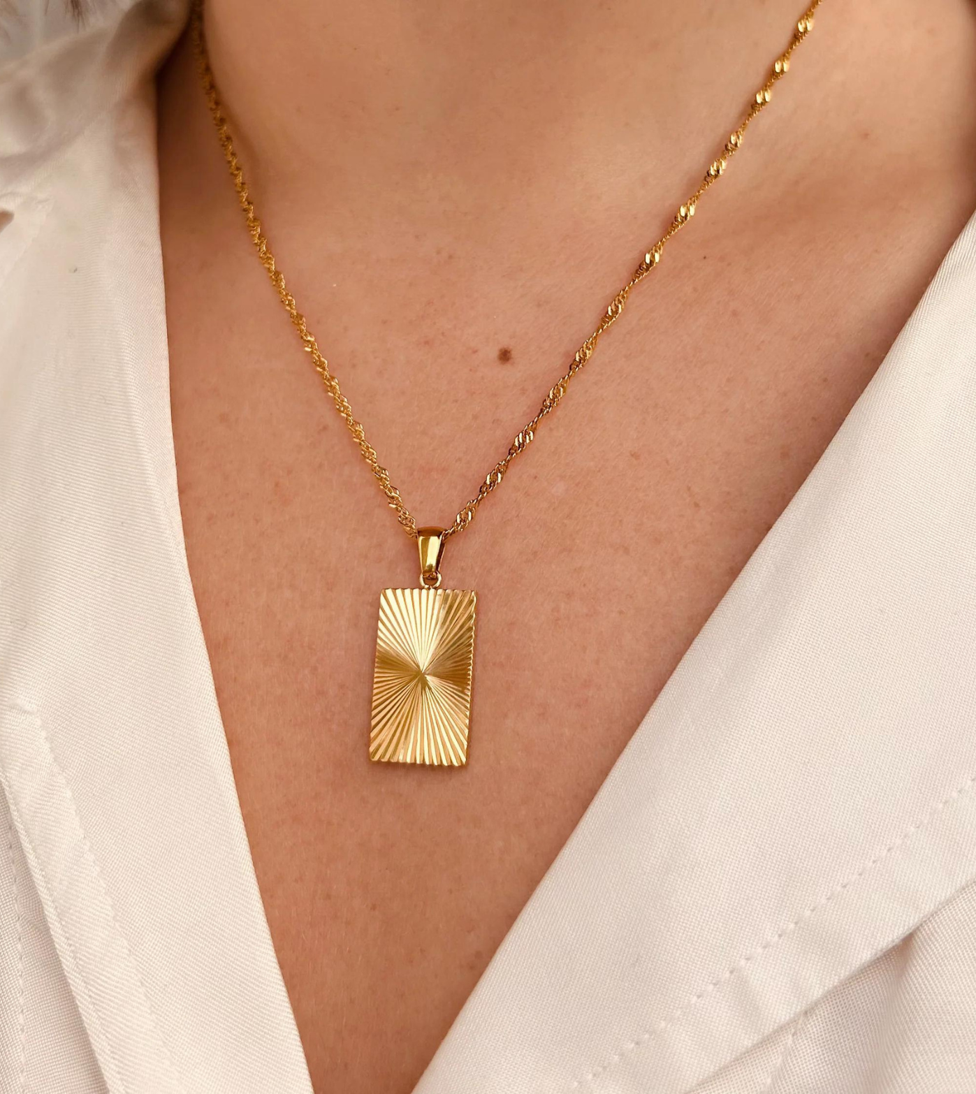 Simple twist chain necklace with a textured pendant. Perfect for the beach or a sunny day out! This chic, lightweight necklace adds a playful twist to any summer outfit, making it the ideal accessory for your warm-weather adventures.