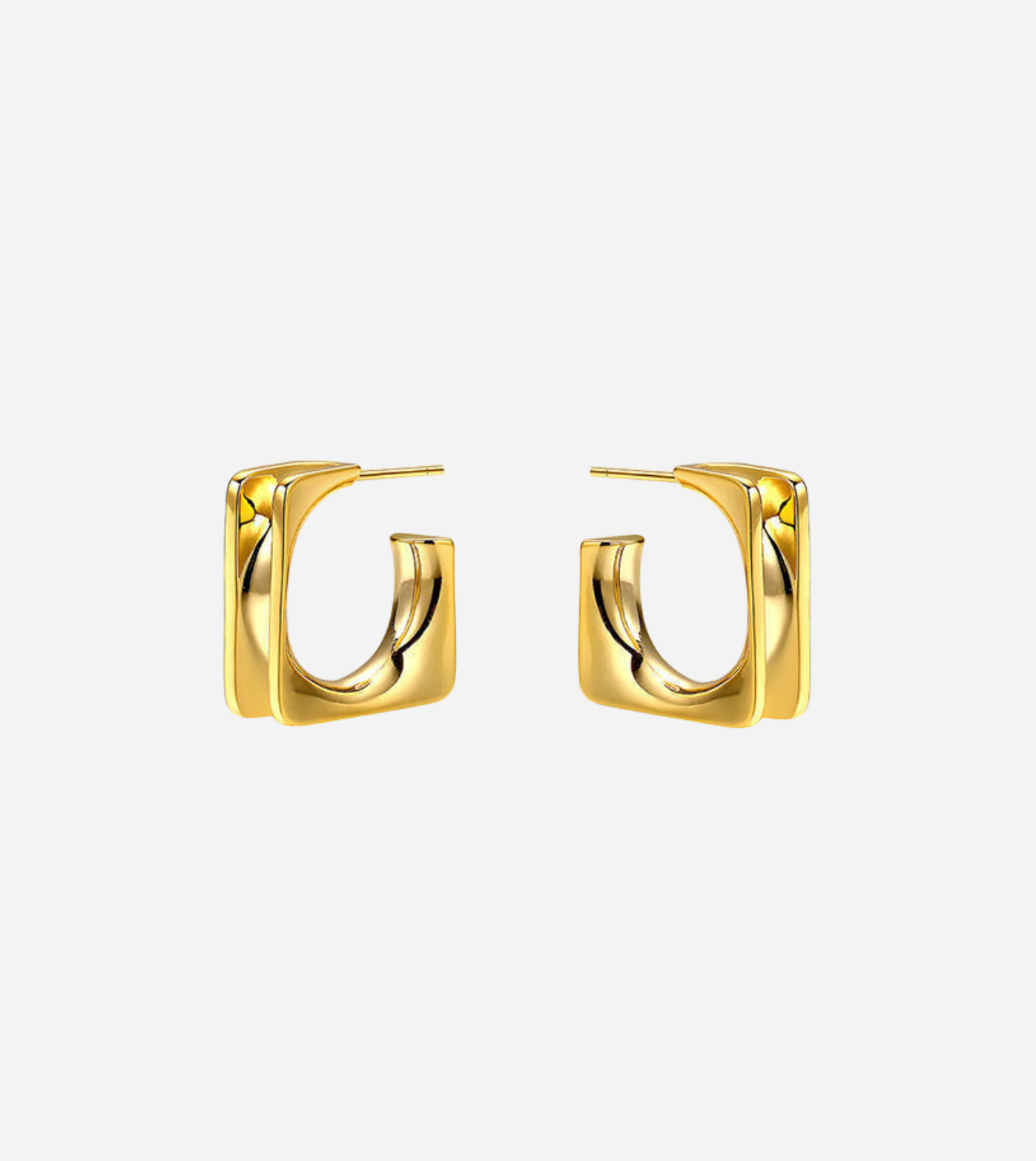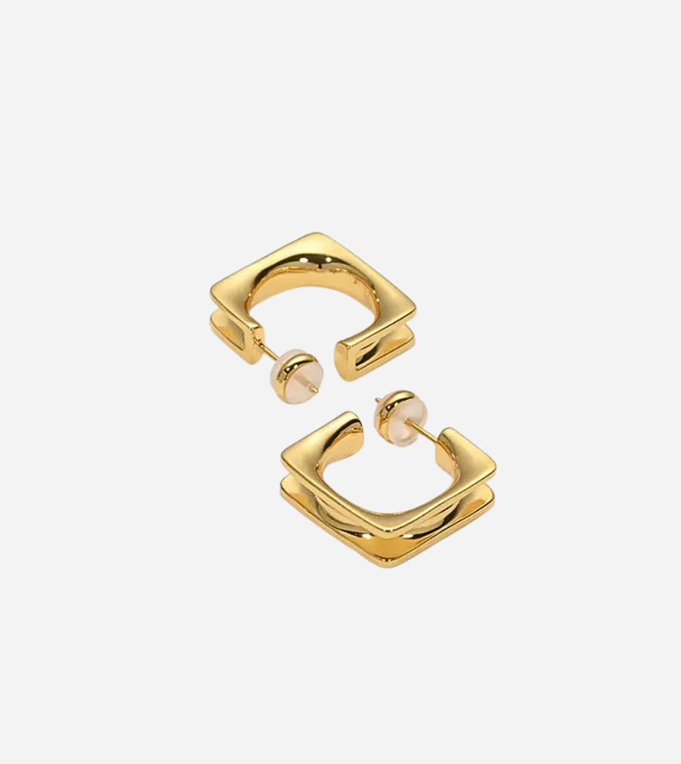 Introducing "Valencia" Chunky Square Hoops, where modern geometry meets timeless elegance. These bold earrings are designed to make a statement with their unique square shape, rounded on the inside for comfort and style.