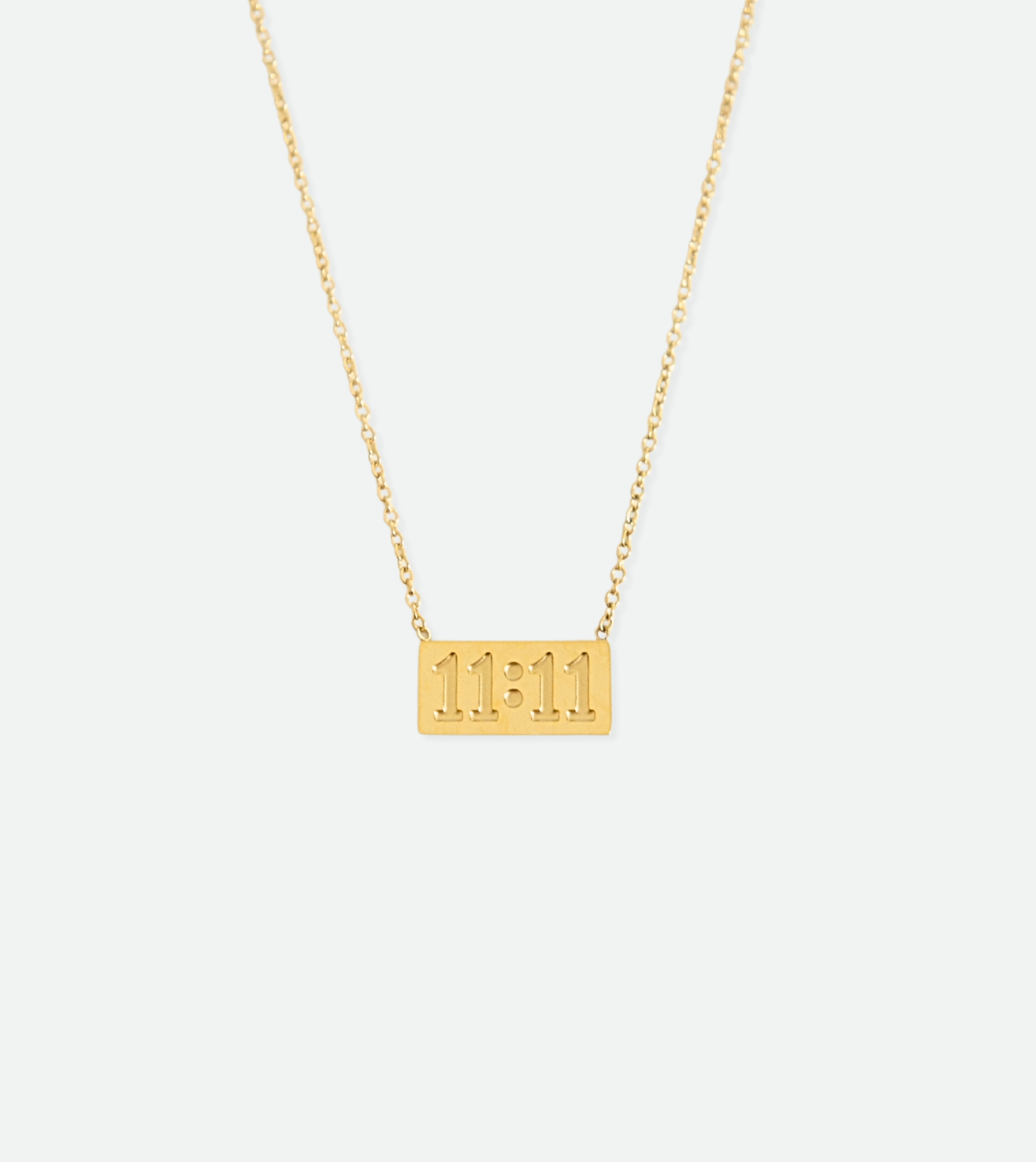 Dainty 11:11 Plaque Pendant Necklace: Capture a moment of magic with this sleek necklace, featuring a delicate plaque pendant inscribed with '11:11'. Crafted for everyday wear, this piece is perfect for those who believe in the power of wishful thinking or simply enjoy a minimalist touch.